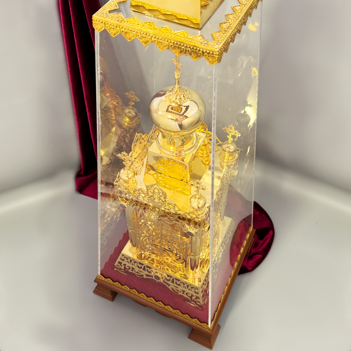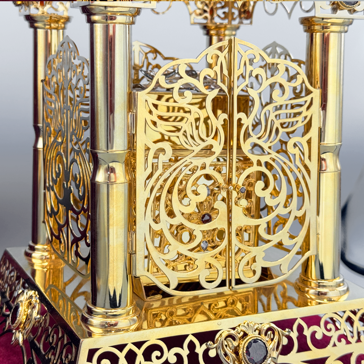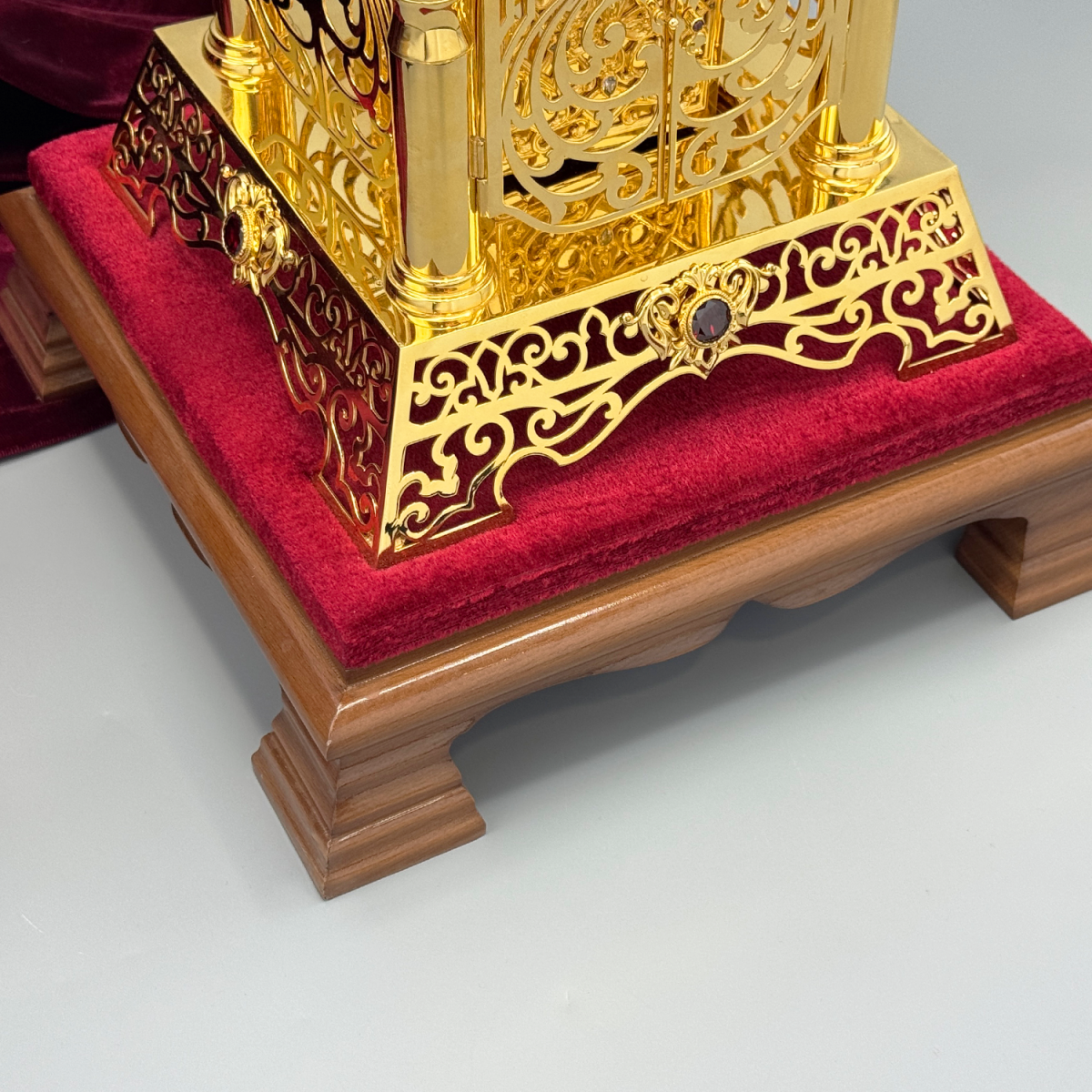 - Дарохранительница латунная с красными камнями в позолоте 2.7.1515лп-К