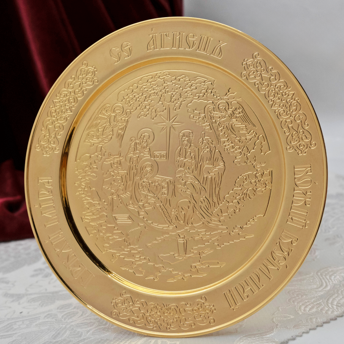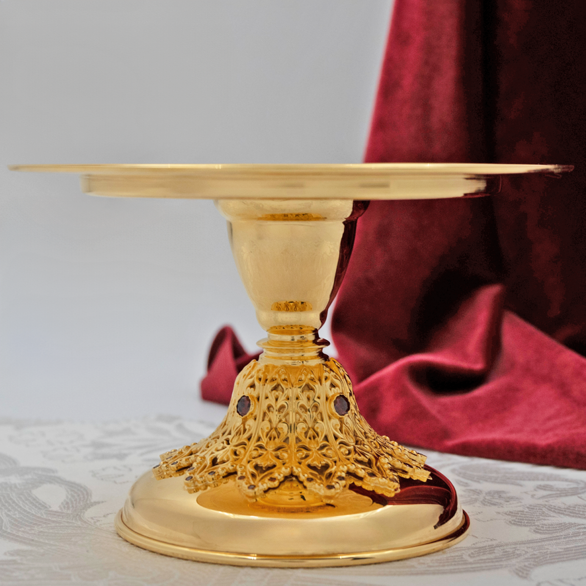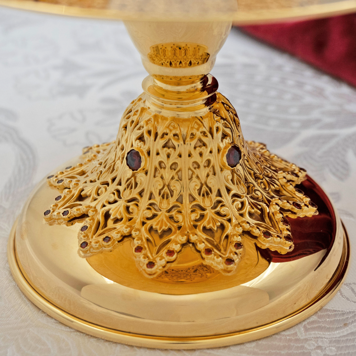 - Дискос латунный с красными камнями в позолоте 2.7.1001лп