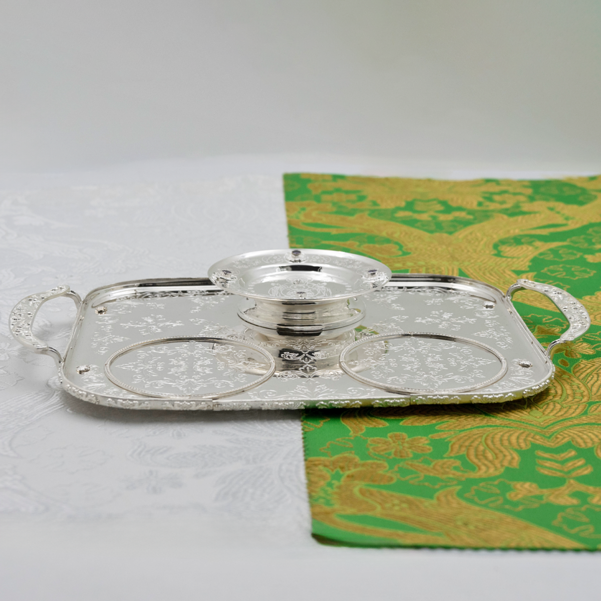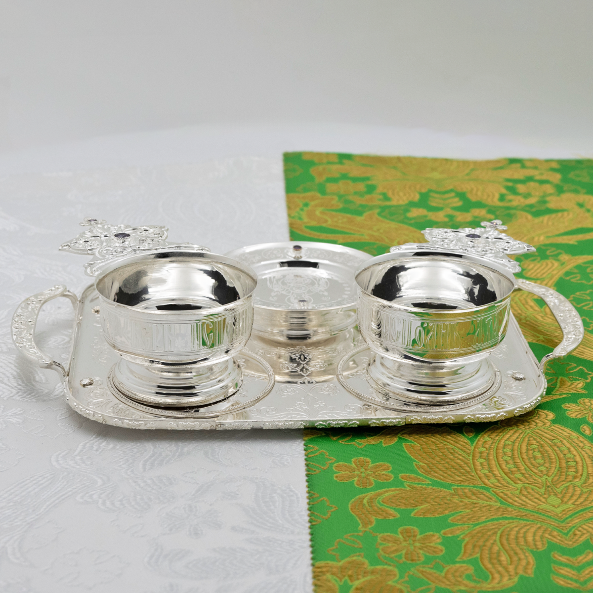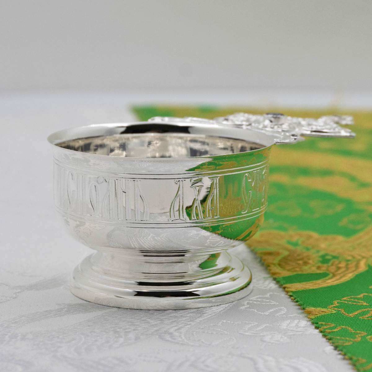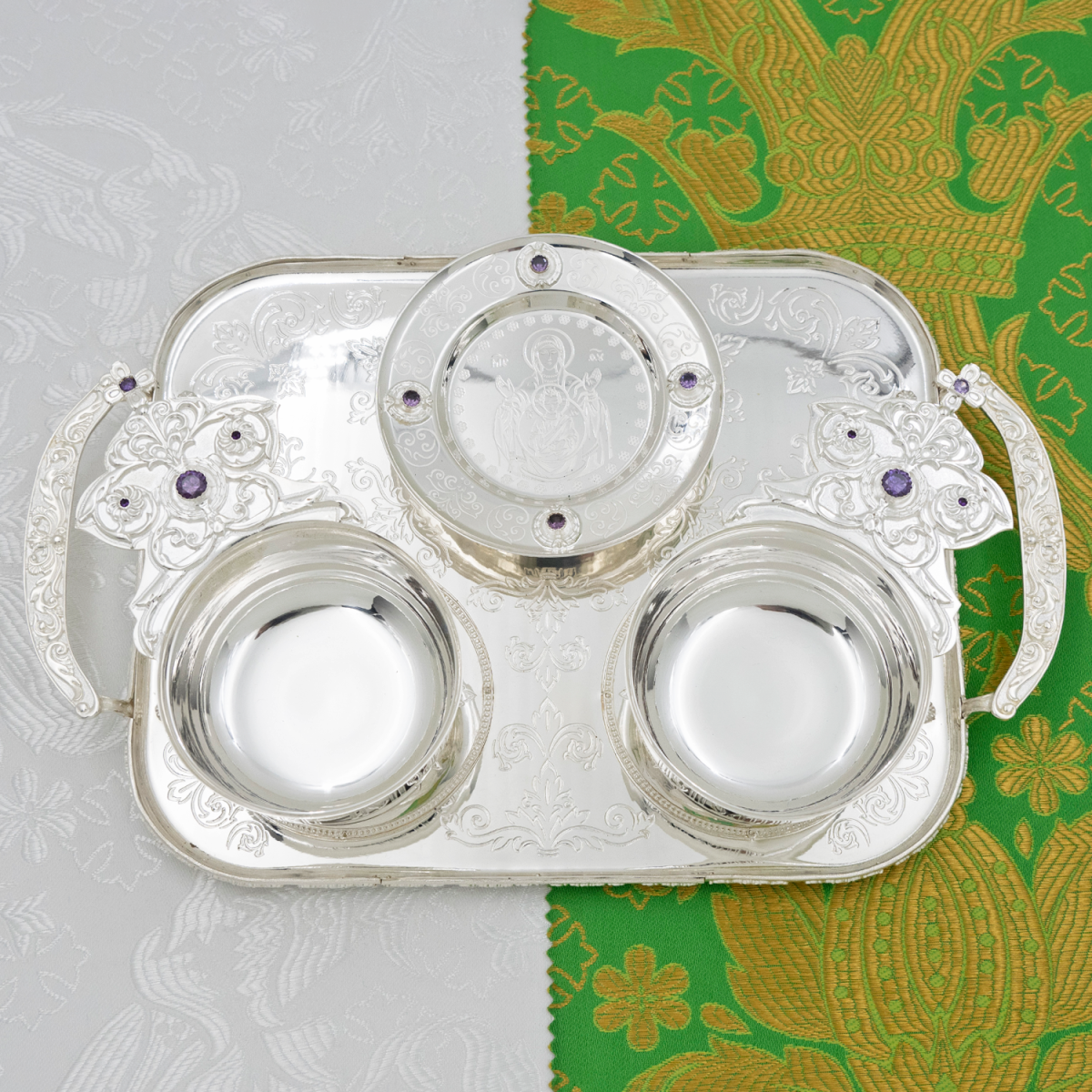 - Набор для архиерейской запивки латунный с фиолетовыми камнями в серебрении 2.7.0848л-К/728л