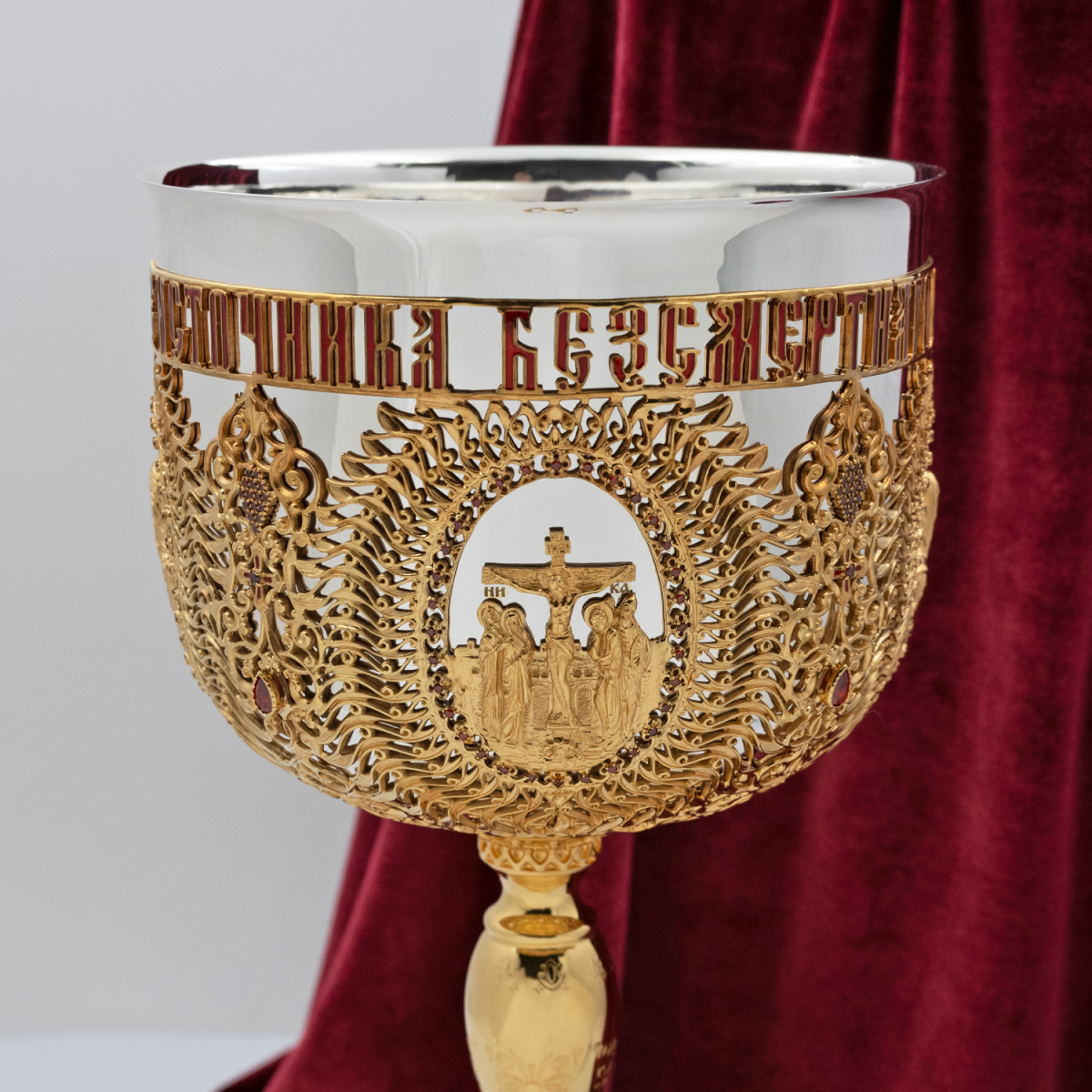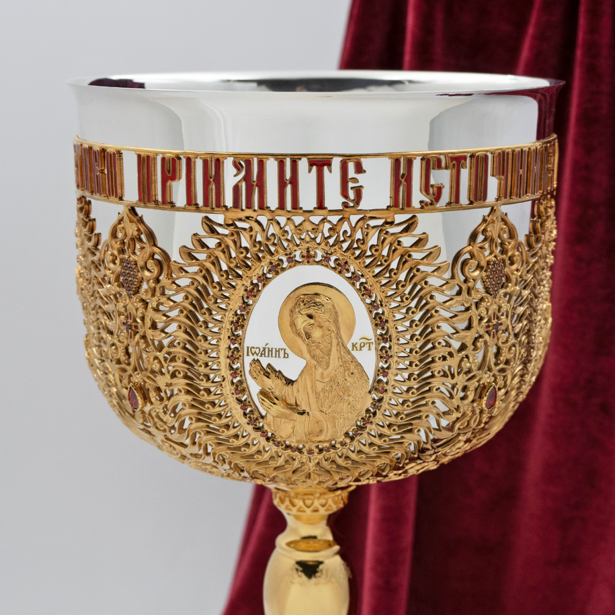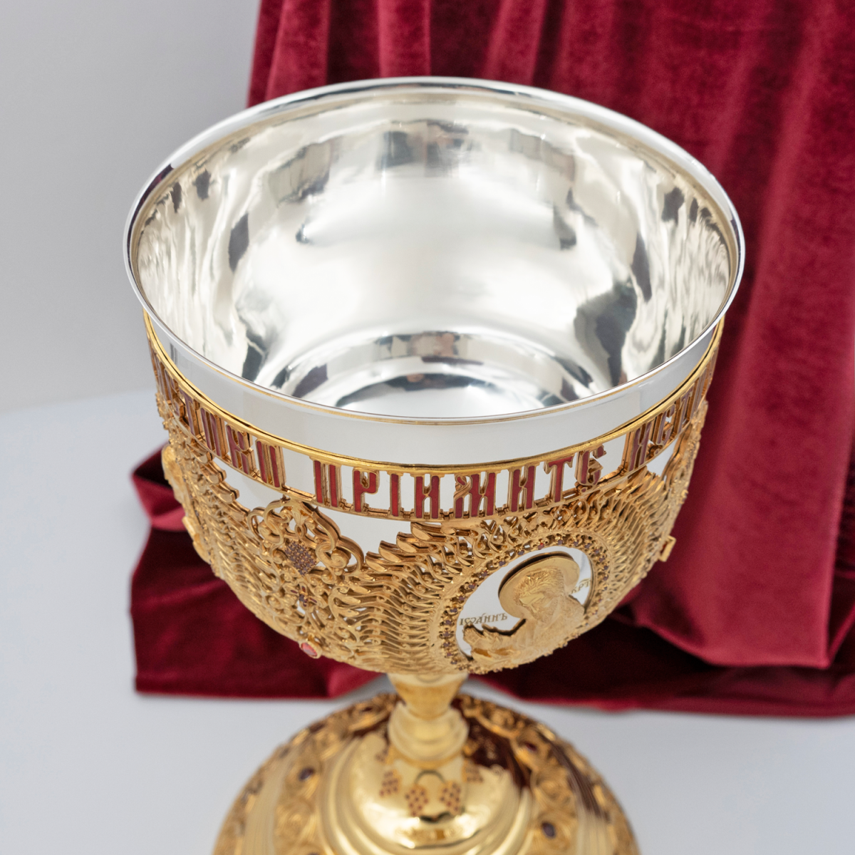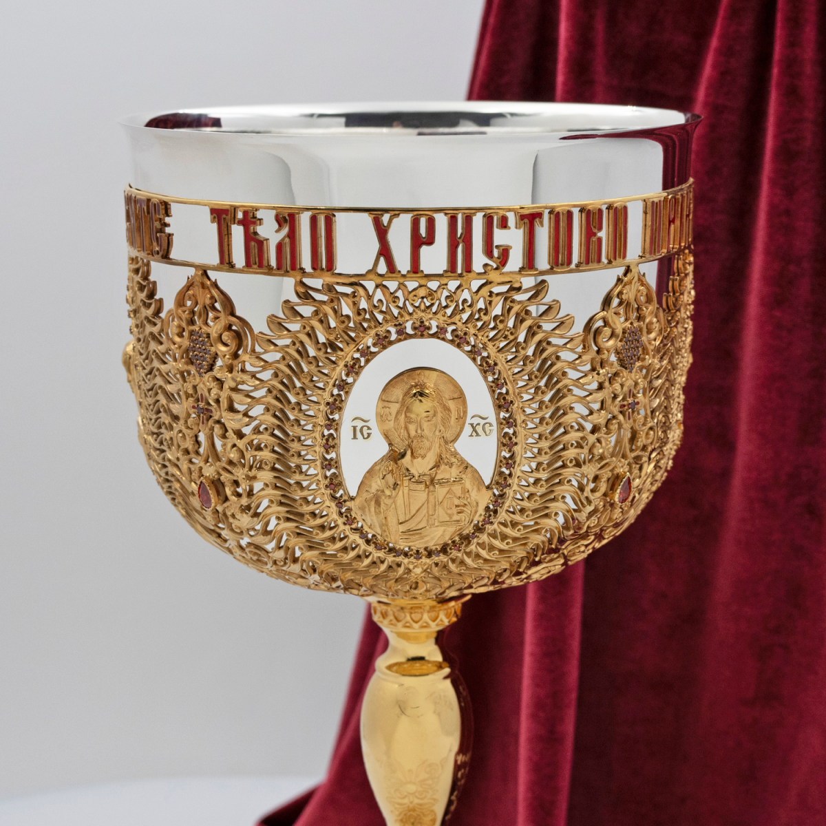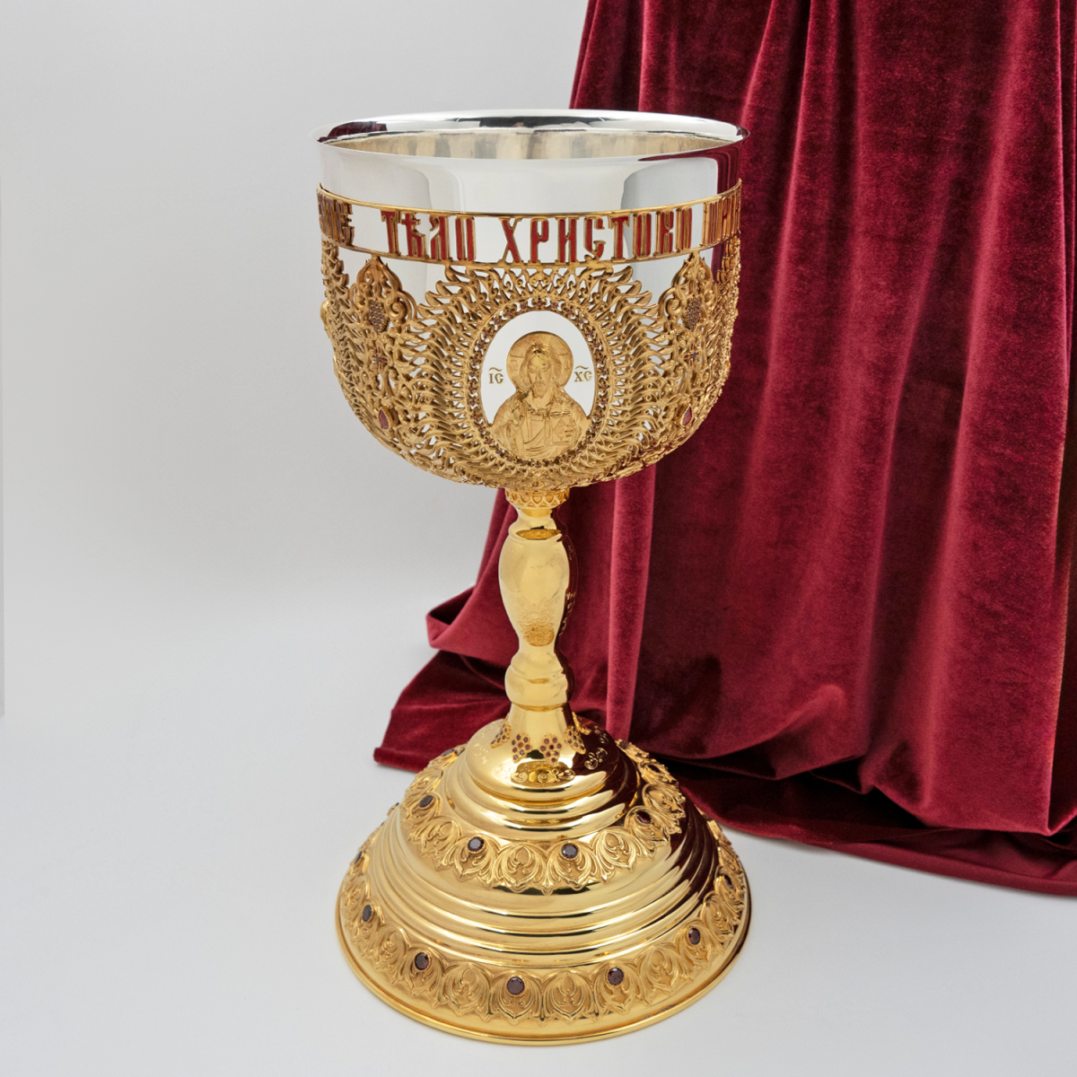 - Евхаристический комбинированый набор с красными камнями в позолоте на 2,5 литра 2.7.1053клпэ-К/3