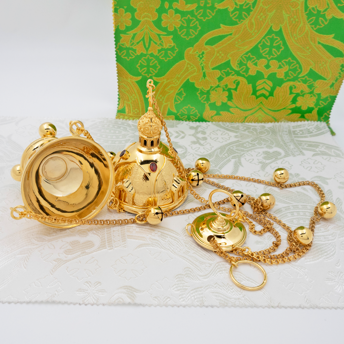 - Кадило латунное с красными камнями в позолоте 2.7.1577лп
