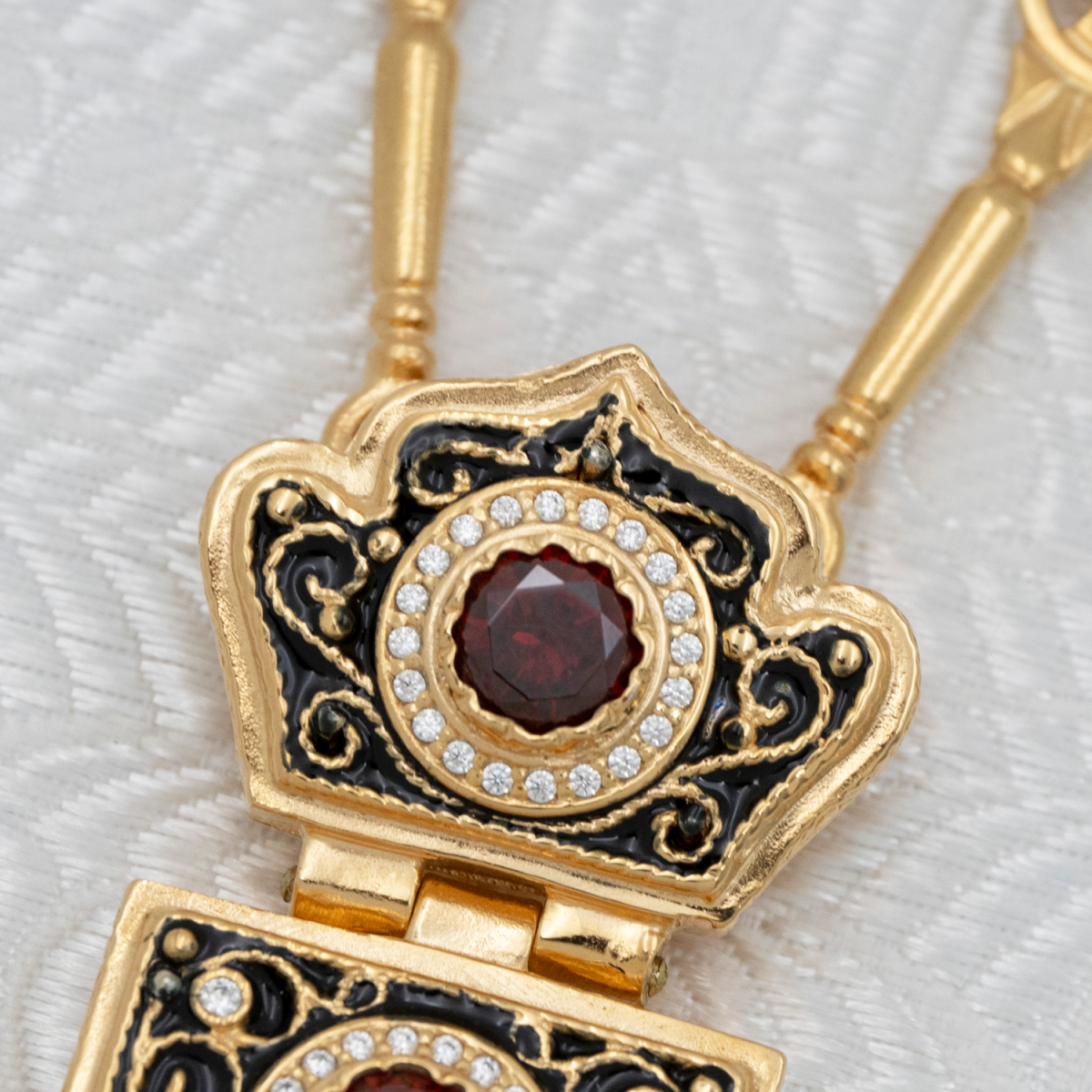 - Крест наперсный латунный с красными камнями в позолоте 2.10.0085лп/39лп
