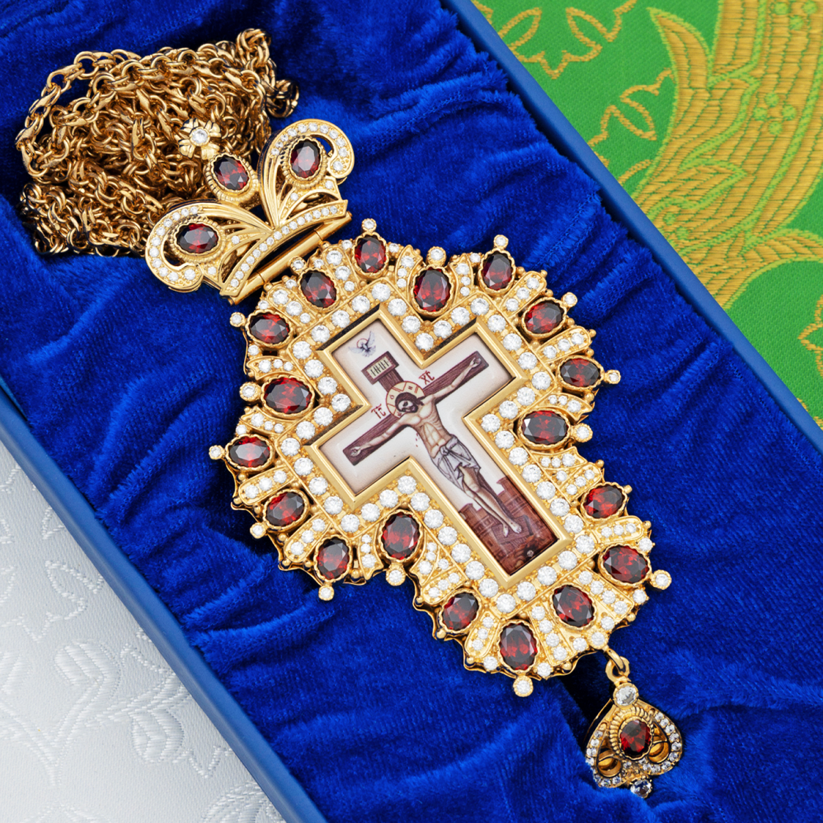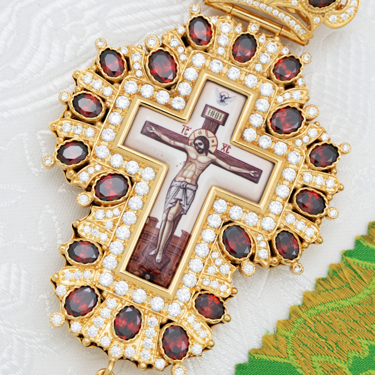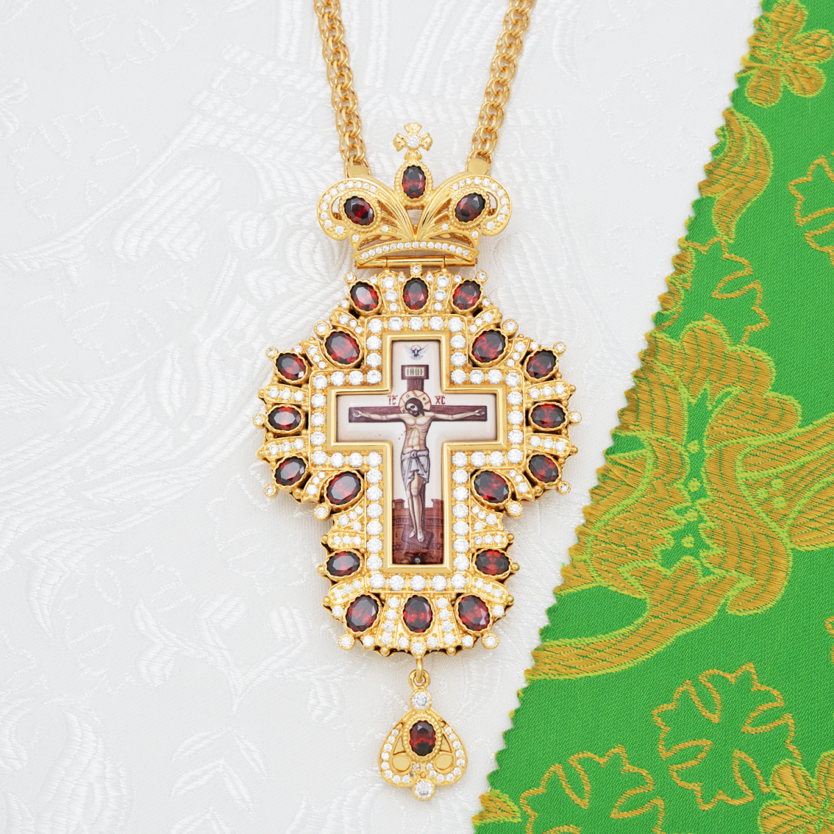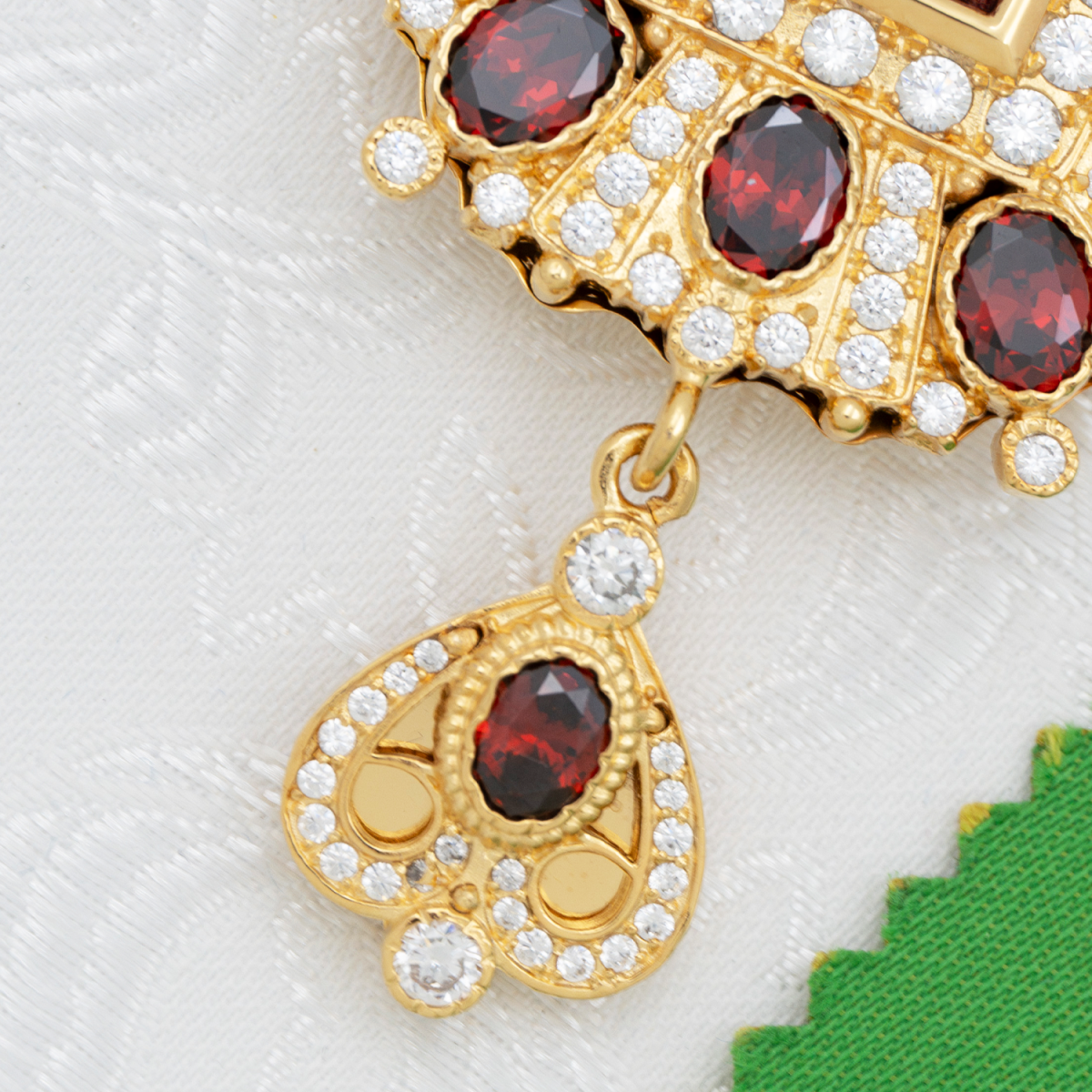 - Крест латунный с красными камнями в позолоте 2.10.0216лп-2/1лп