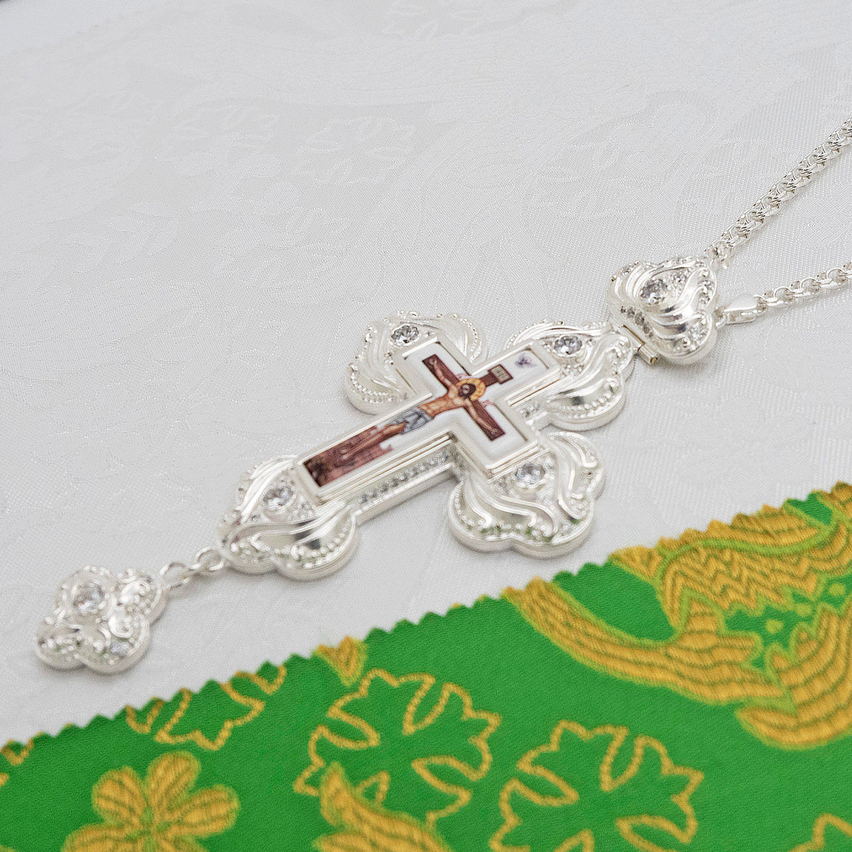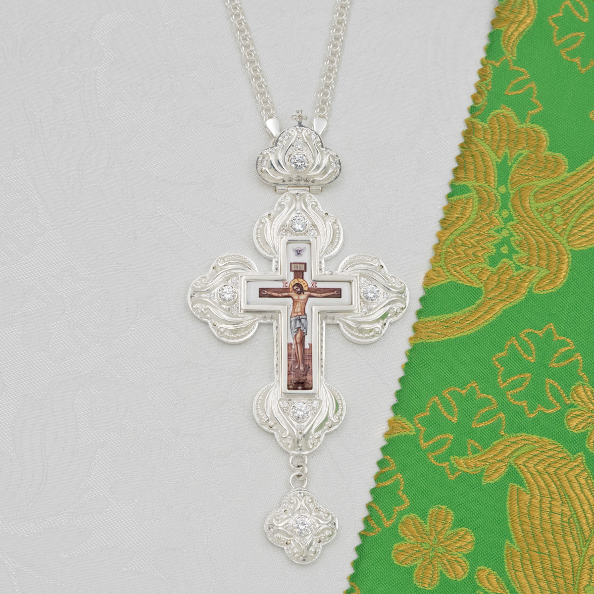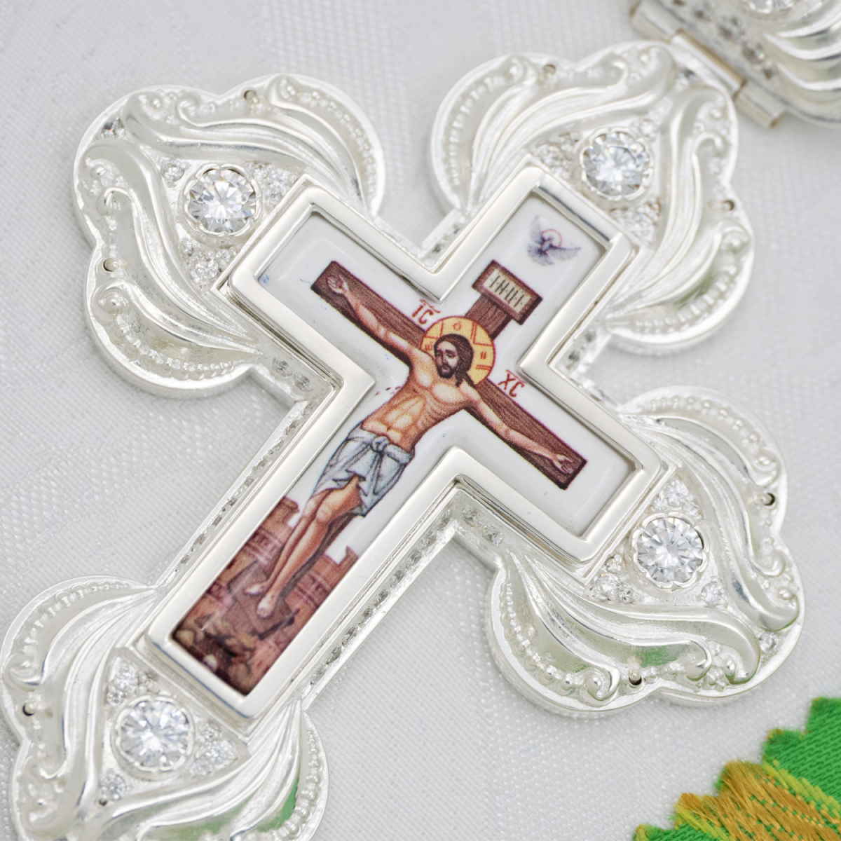 - Крест наперсный латунный с белыми камнями в серебрении 2.10.0225л-2/1л
