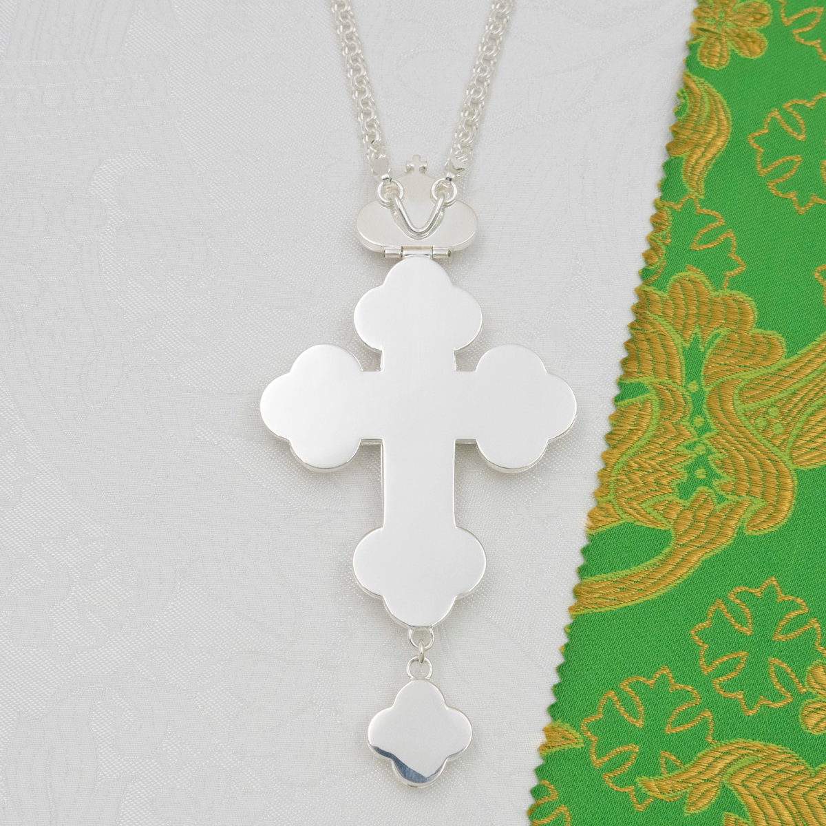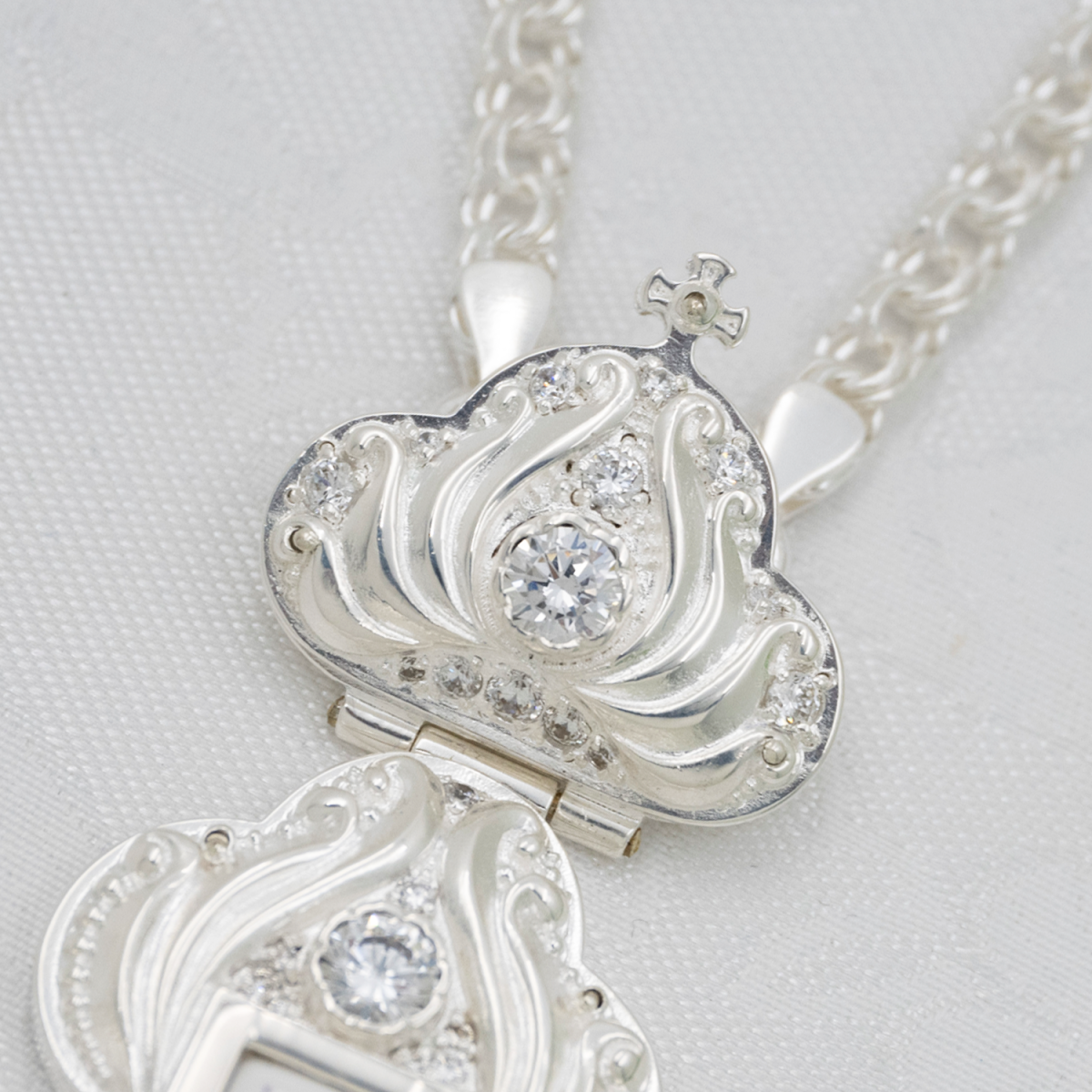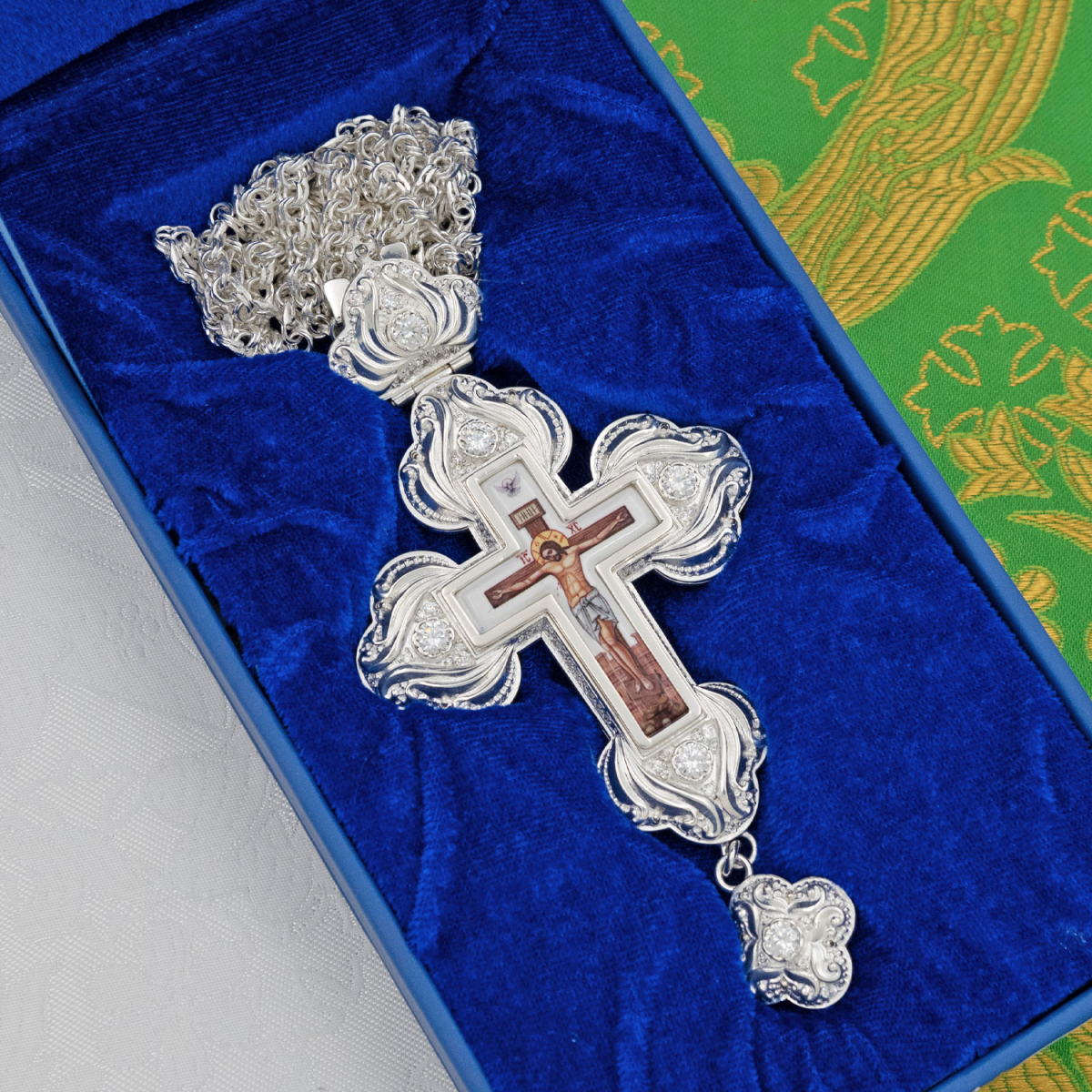 - Крест наперсный латунный с белыми камнями в серебрении 2.10.0225л-2/1л