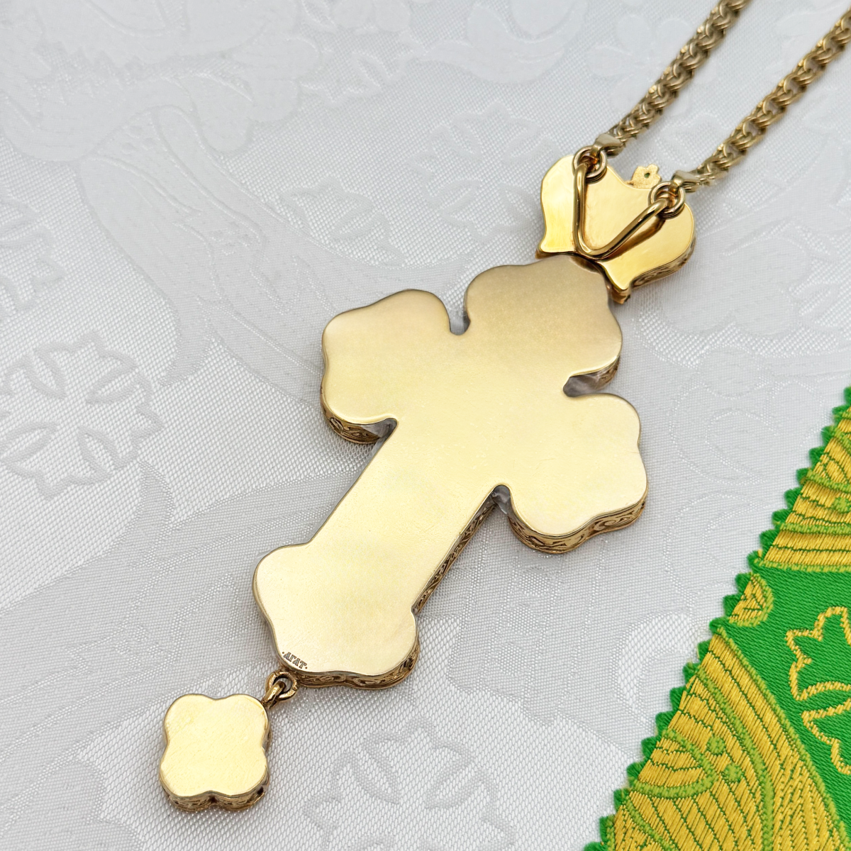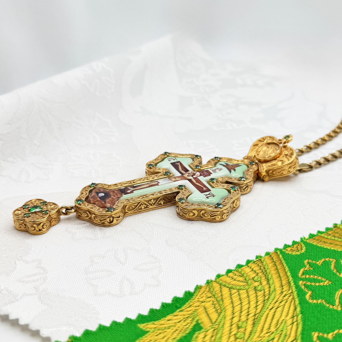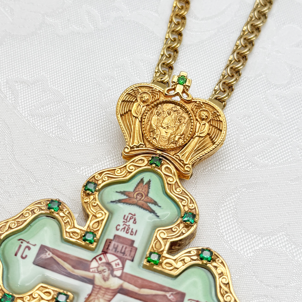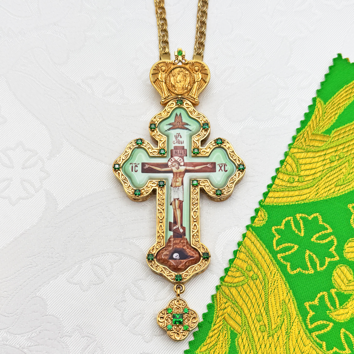 - Крест наперсный латунный с зеленными камнями в позолоте 2.10.0420лп-2/1лп