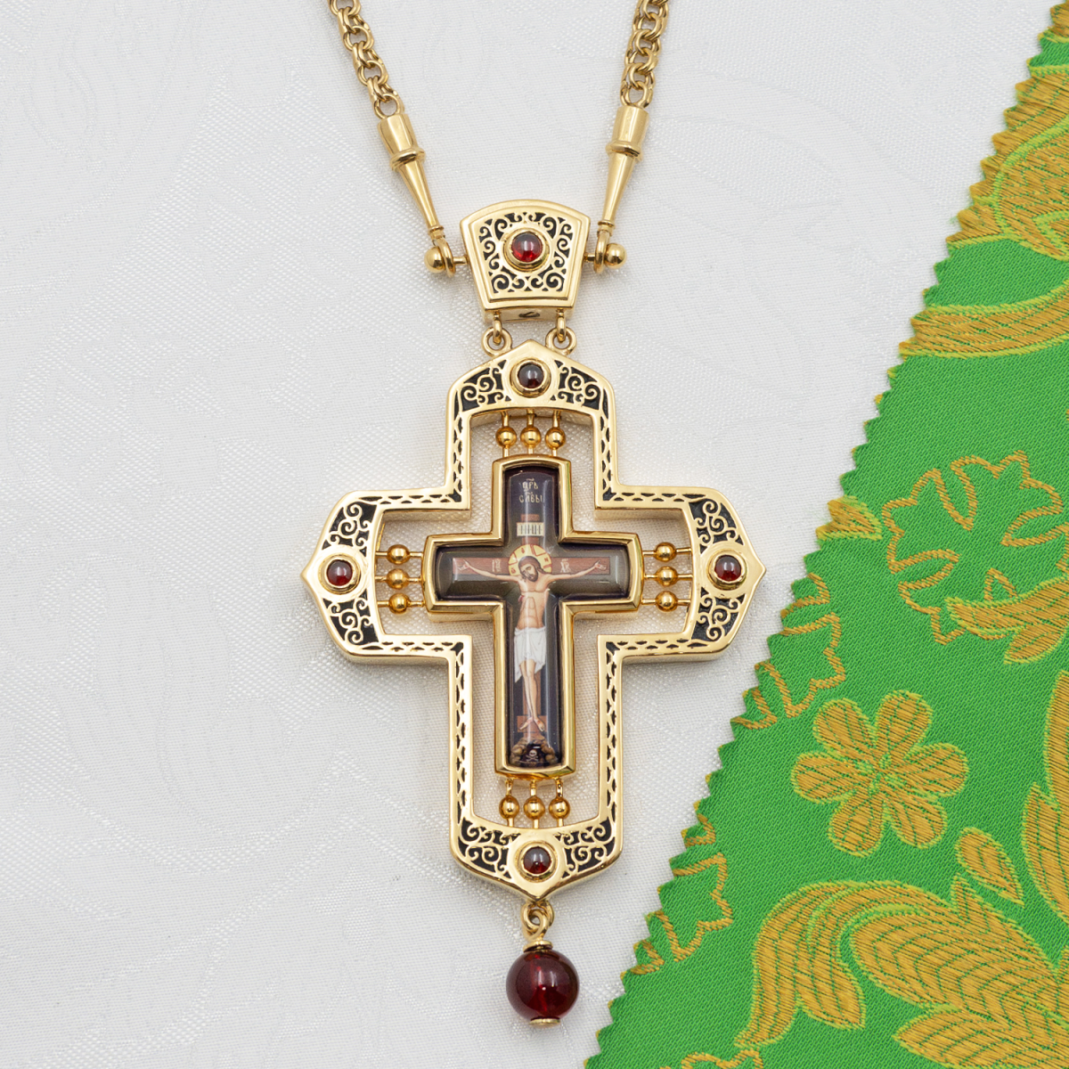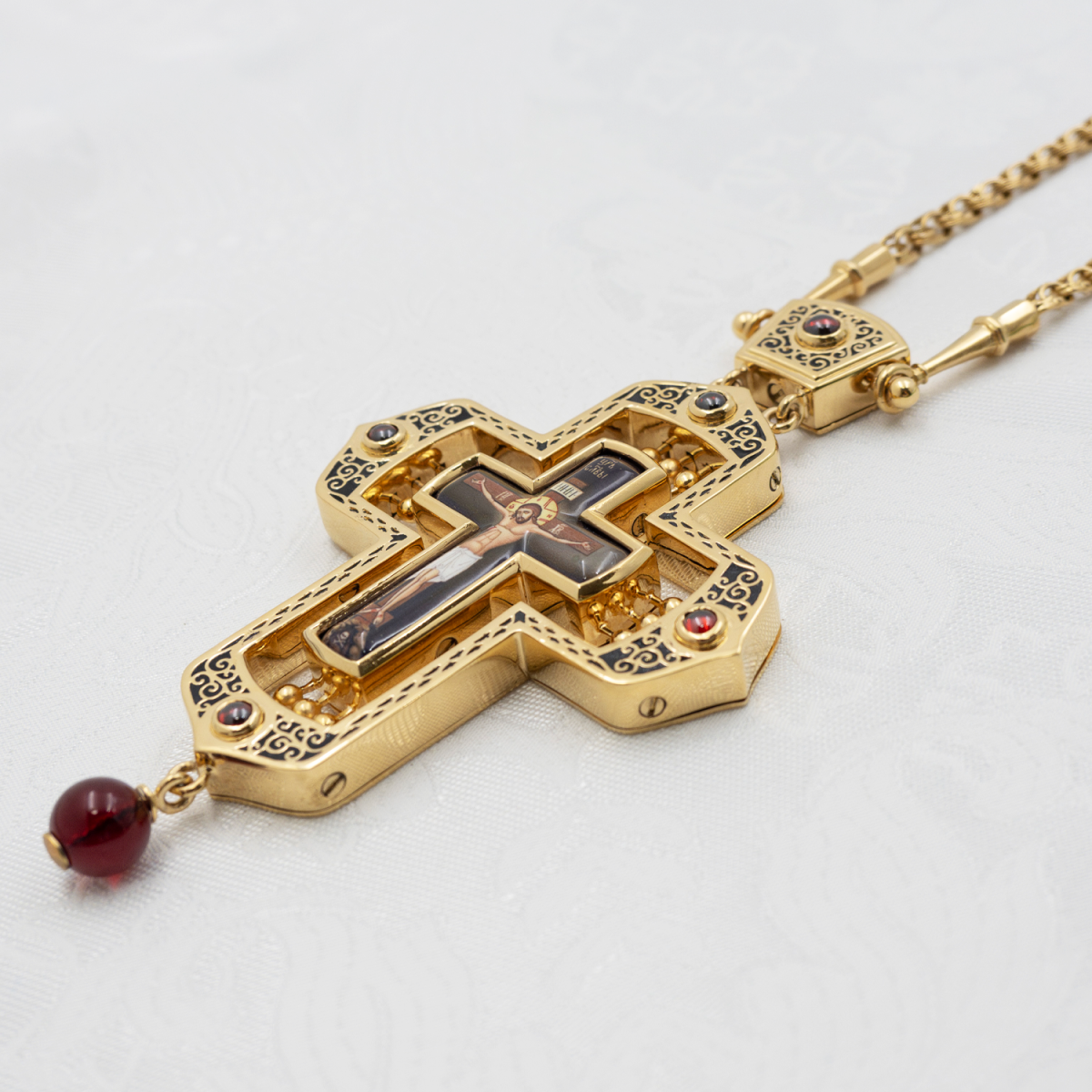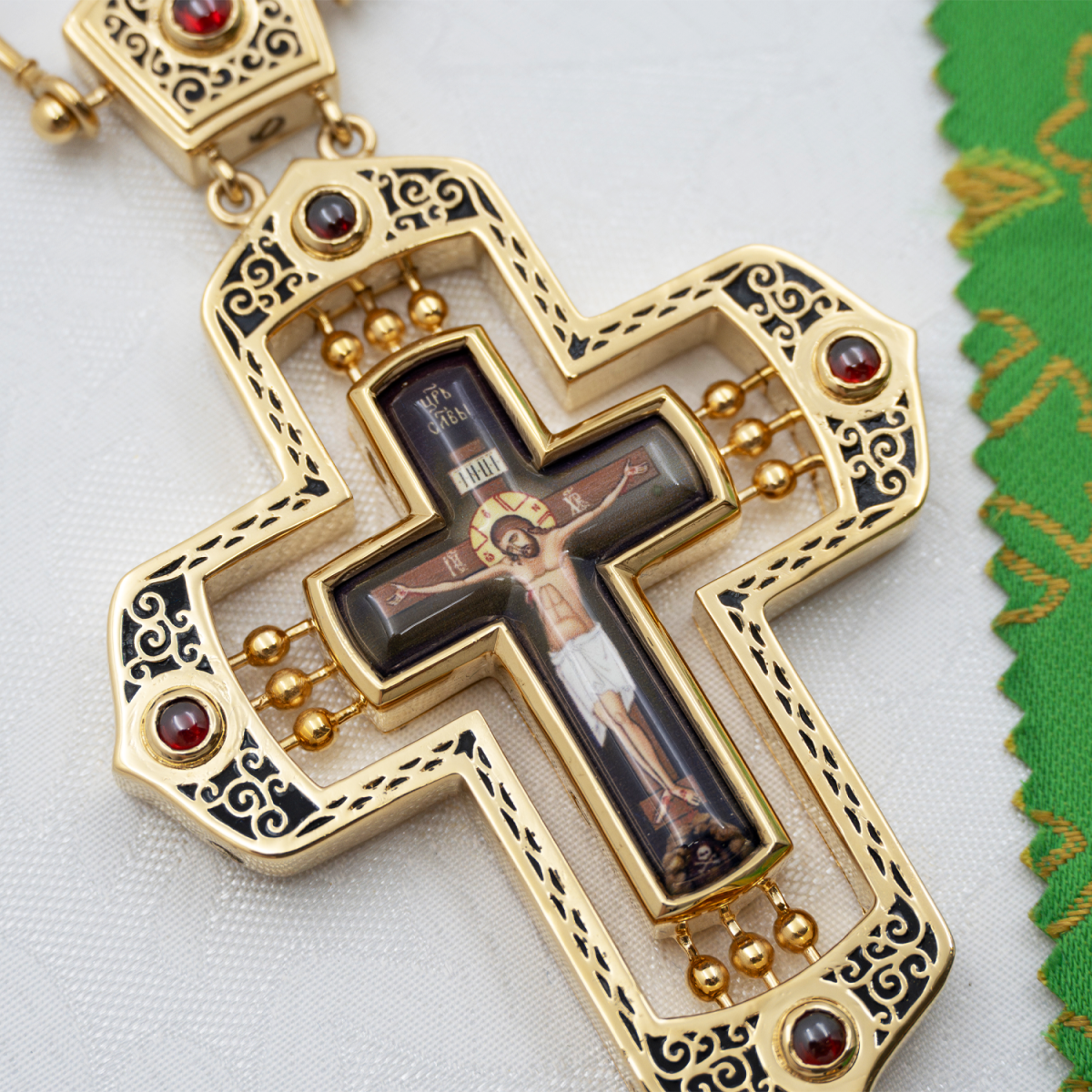 - Крест наперсный латунный с красными камнями в позолоте 2.10.0433лпэ-2/64лп