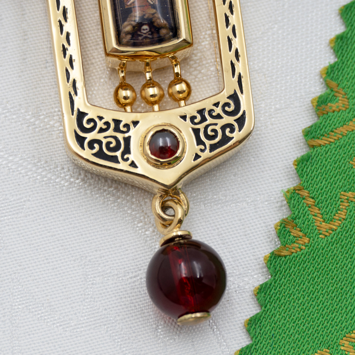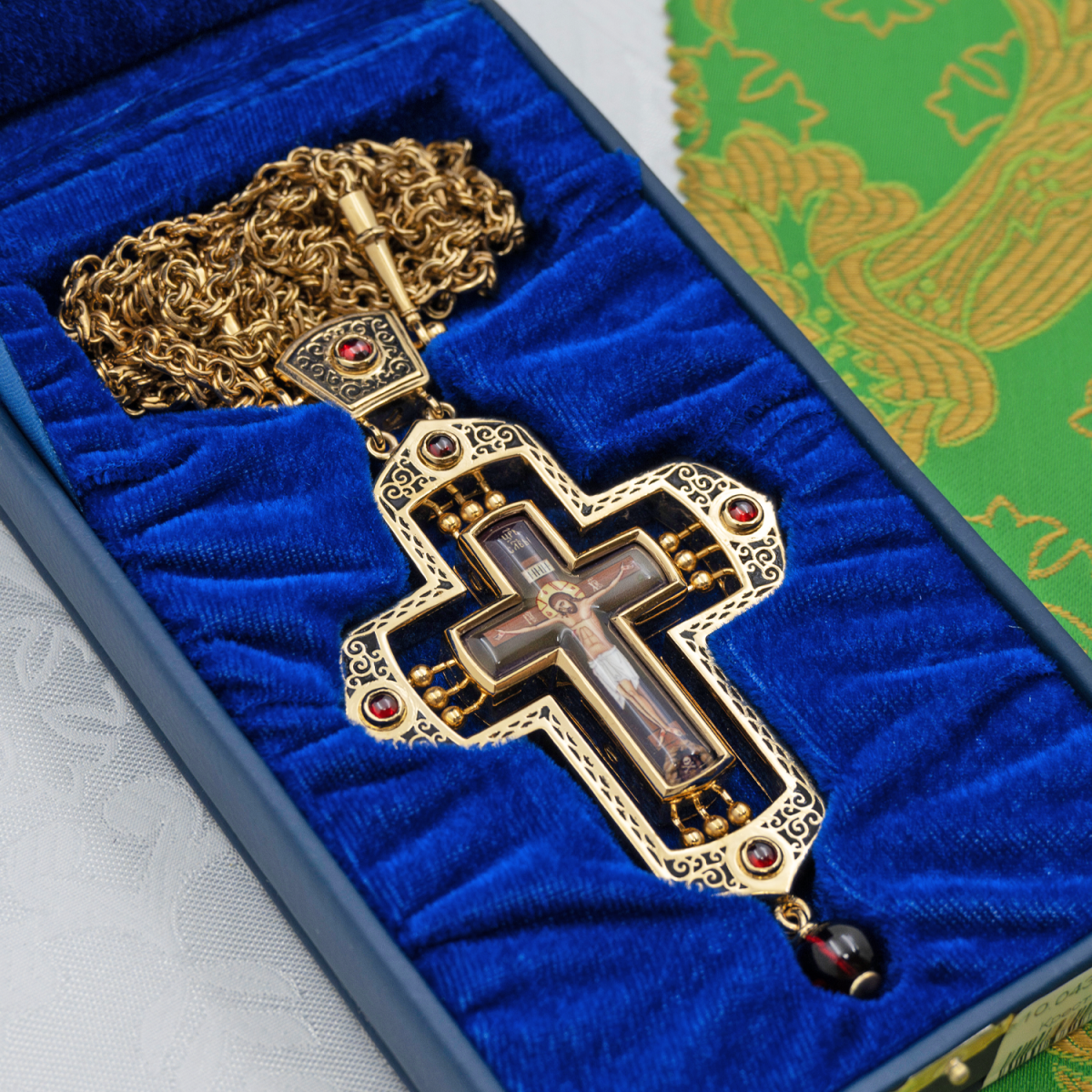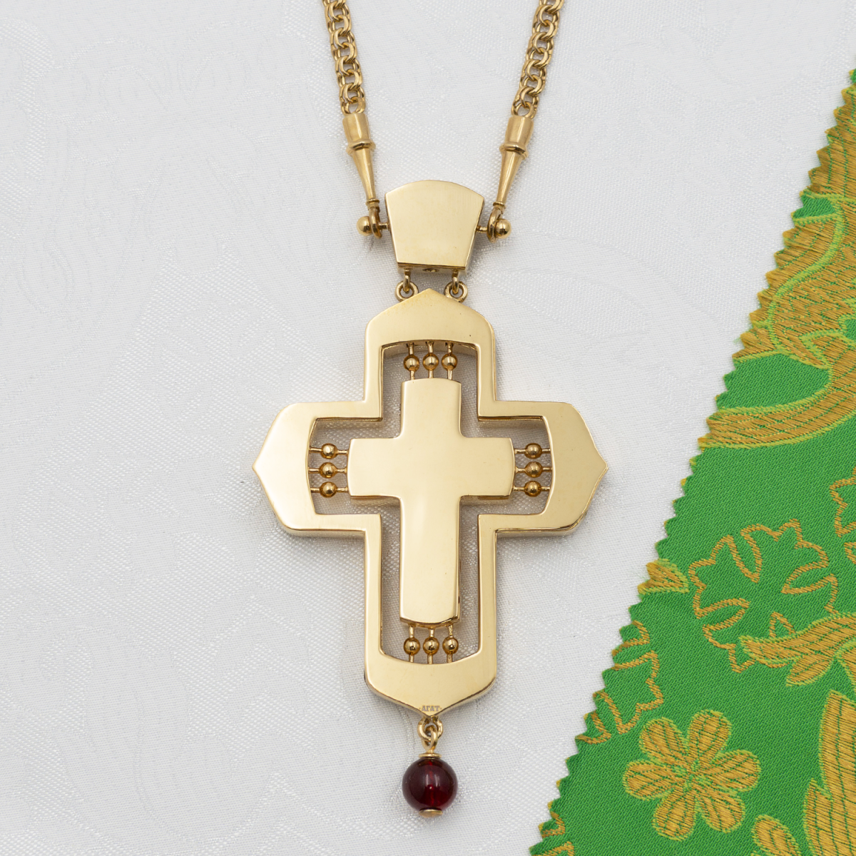 - Крест наперсный латунный с красными камнями в позолоте 2.10.0433лпэ-2/64лп