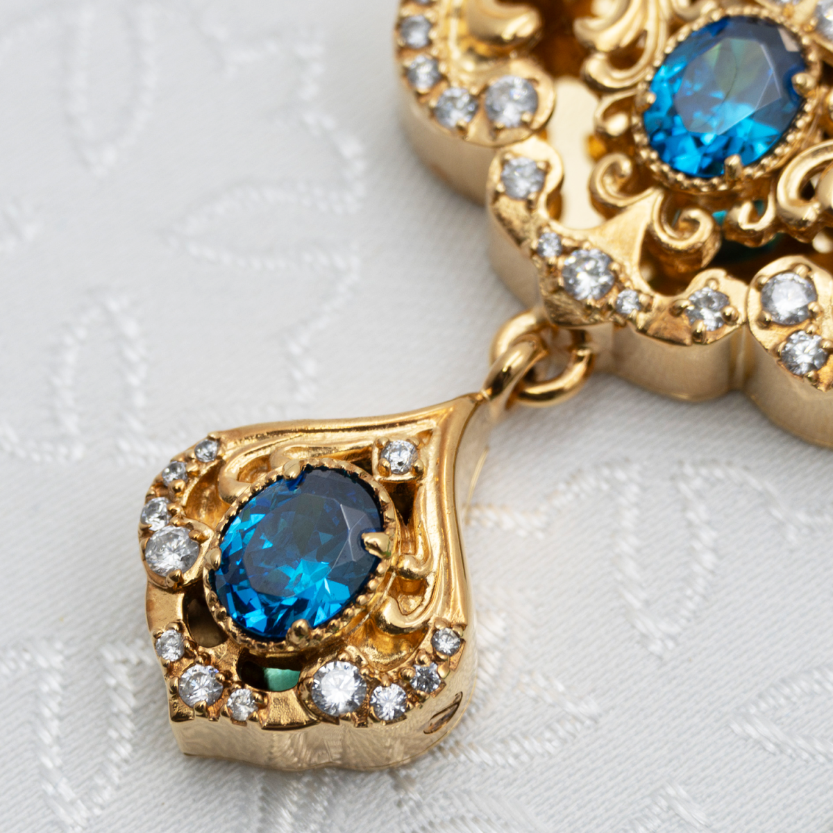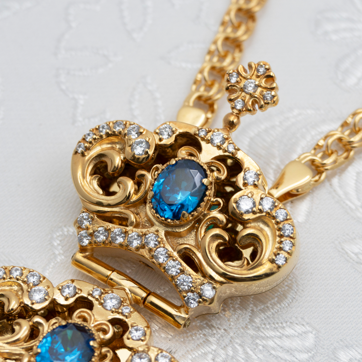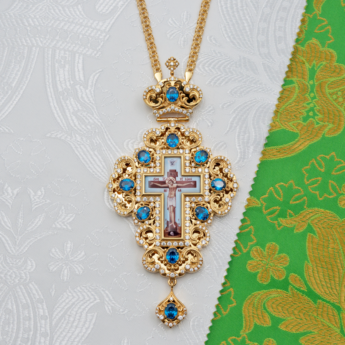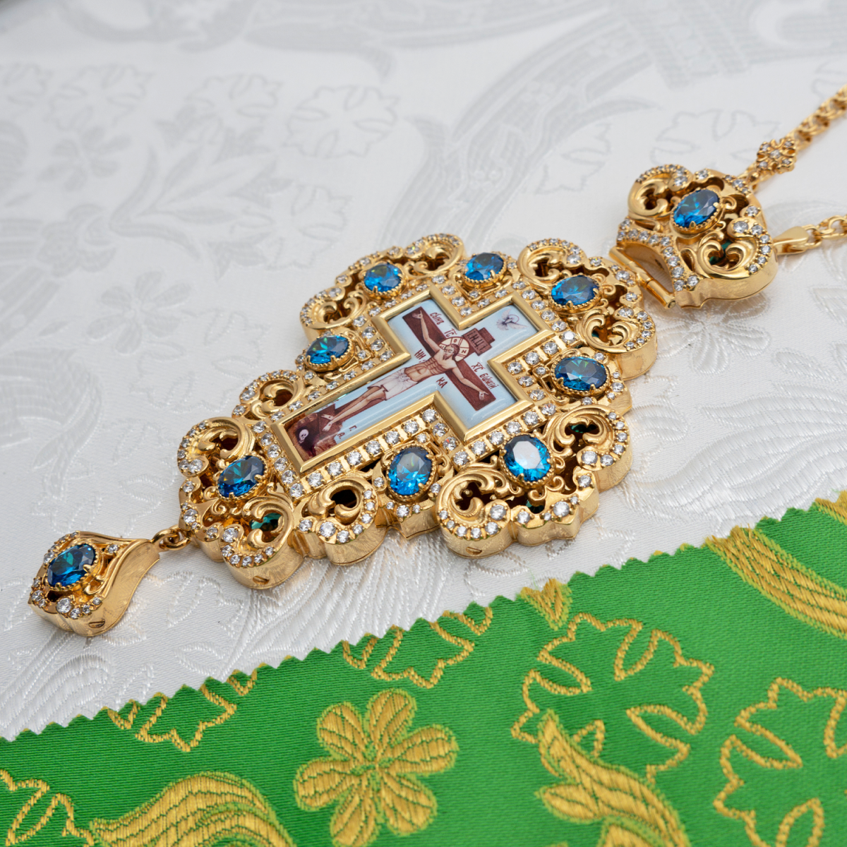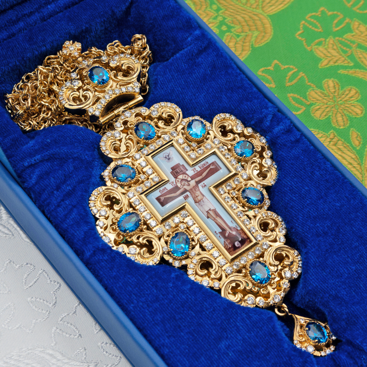 - Наперсный крест латунный с голубыми камнями в позолоте 2.10.0508лп-2/1лп