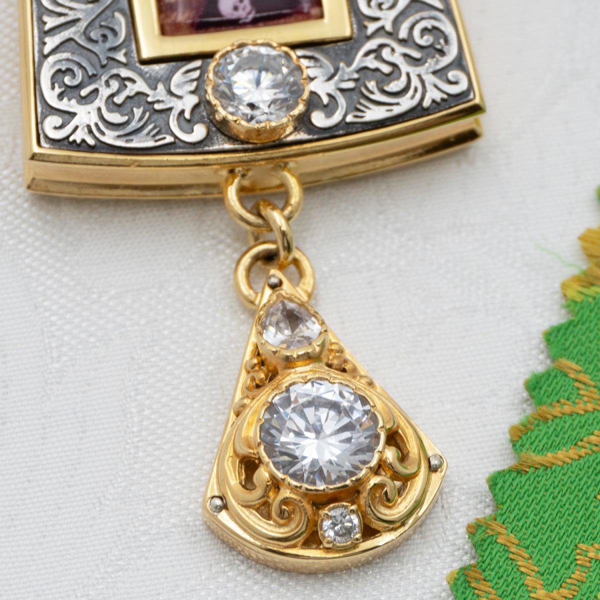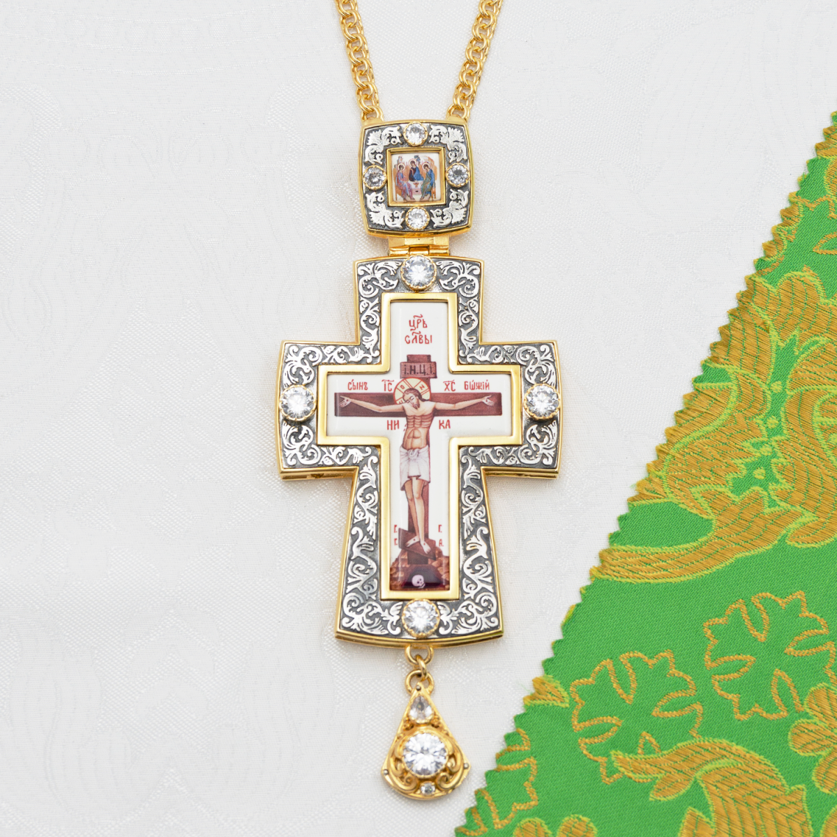 - Крест наперсный латунный с белыми камнями в позолоте 2.10.0645лпр-2/1лп