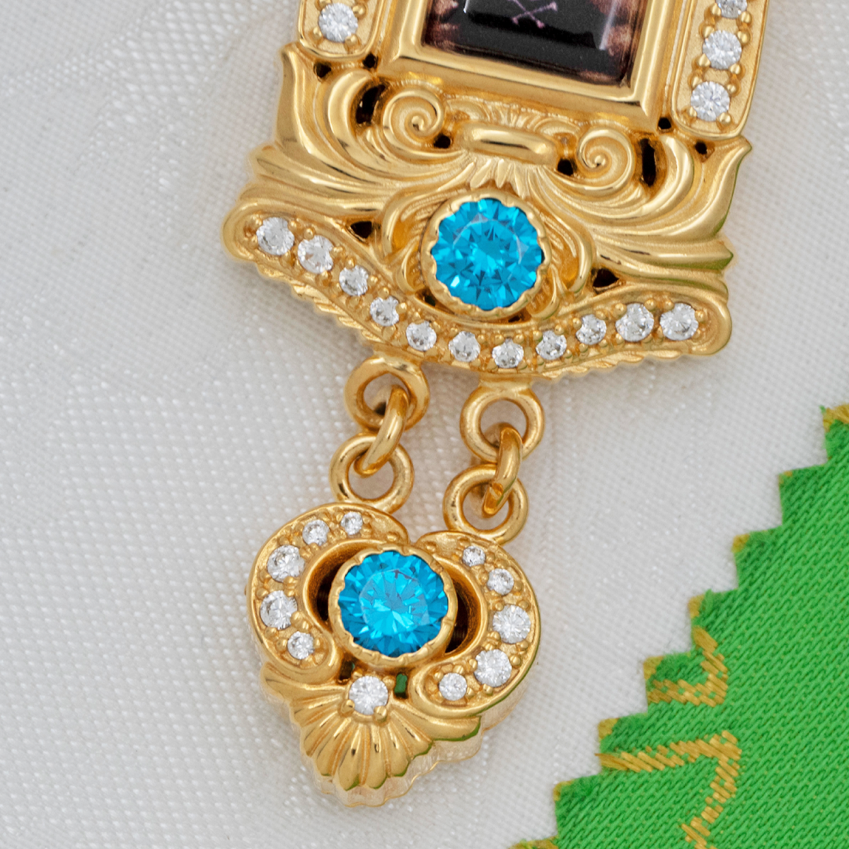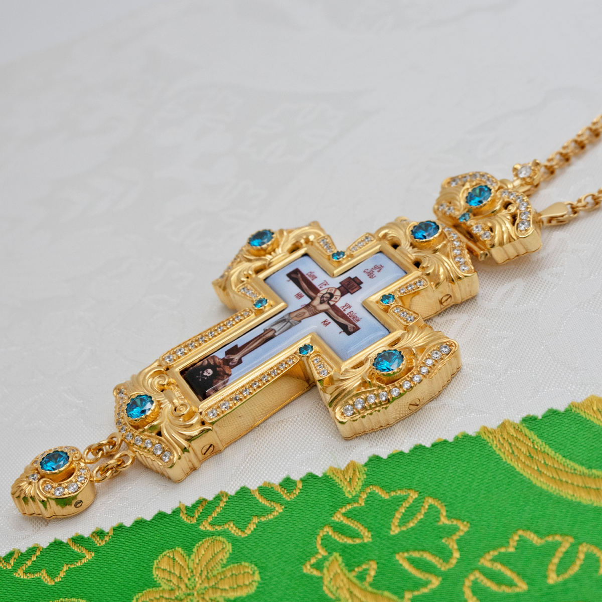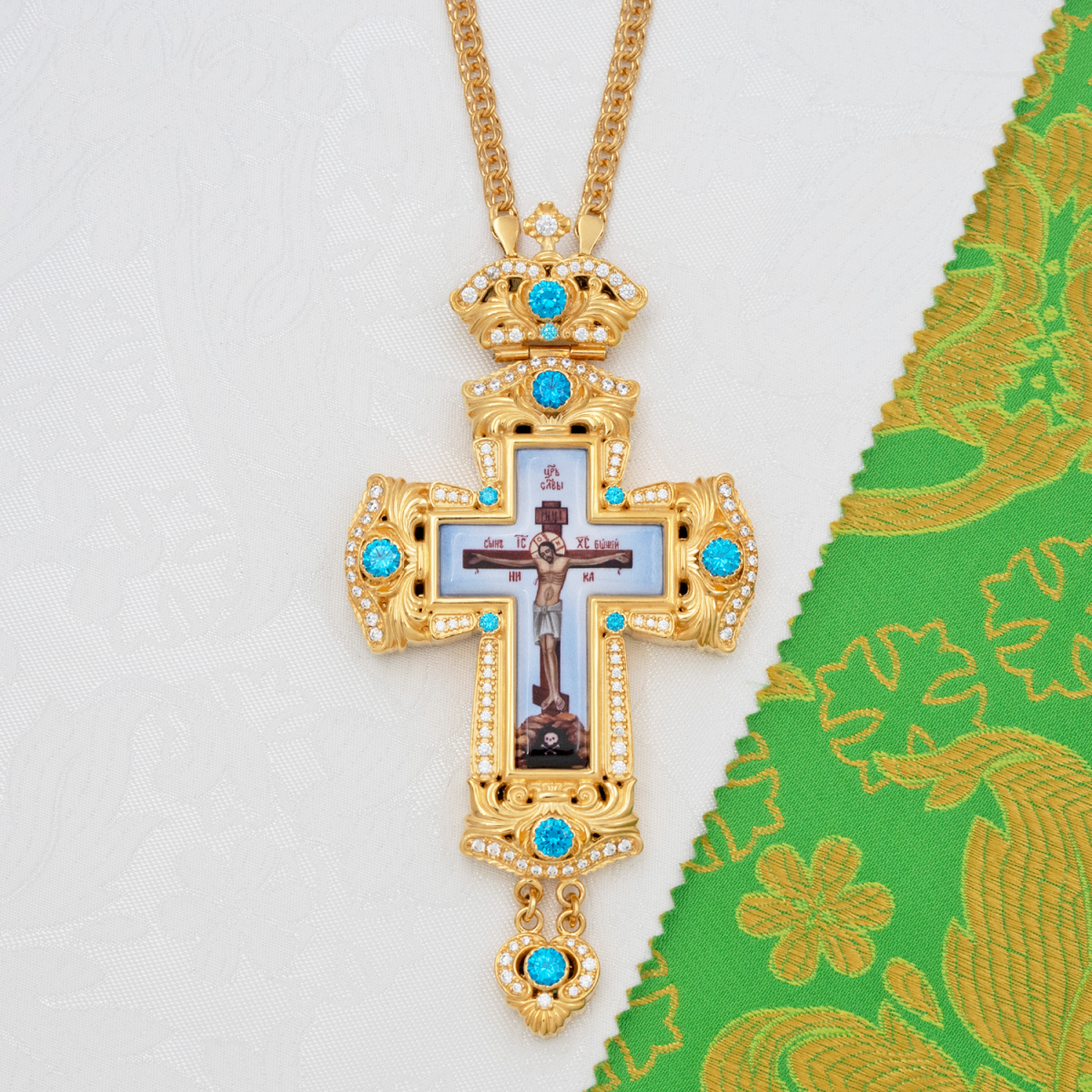 - Крест латунный с голубыми камнями в позолоте 2.10.0359лп-2/1лп