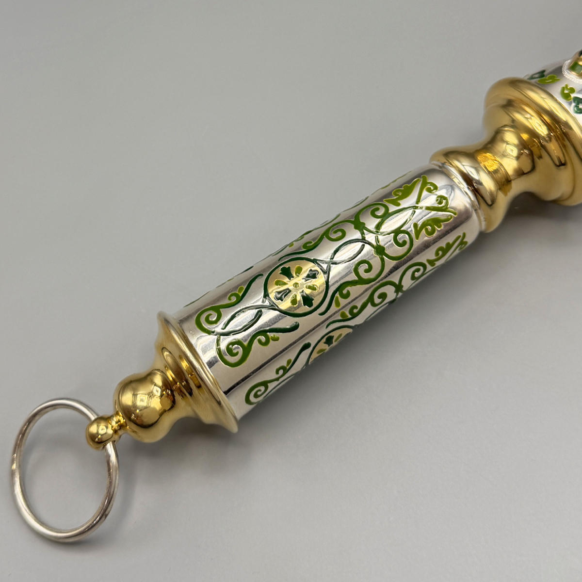 - Кропило Архиерейское с зелеными камнями и эмалью в серебрении и фрагментарной позолоте 2.7.0130лф