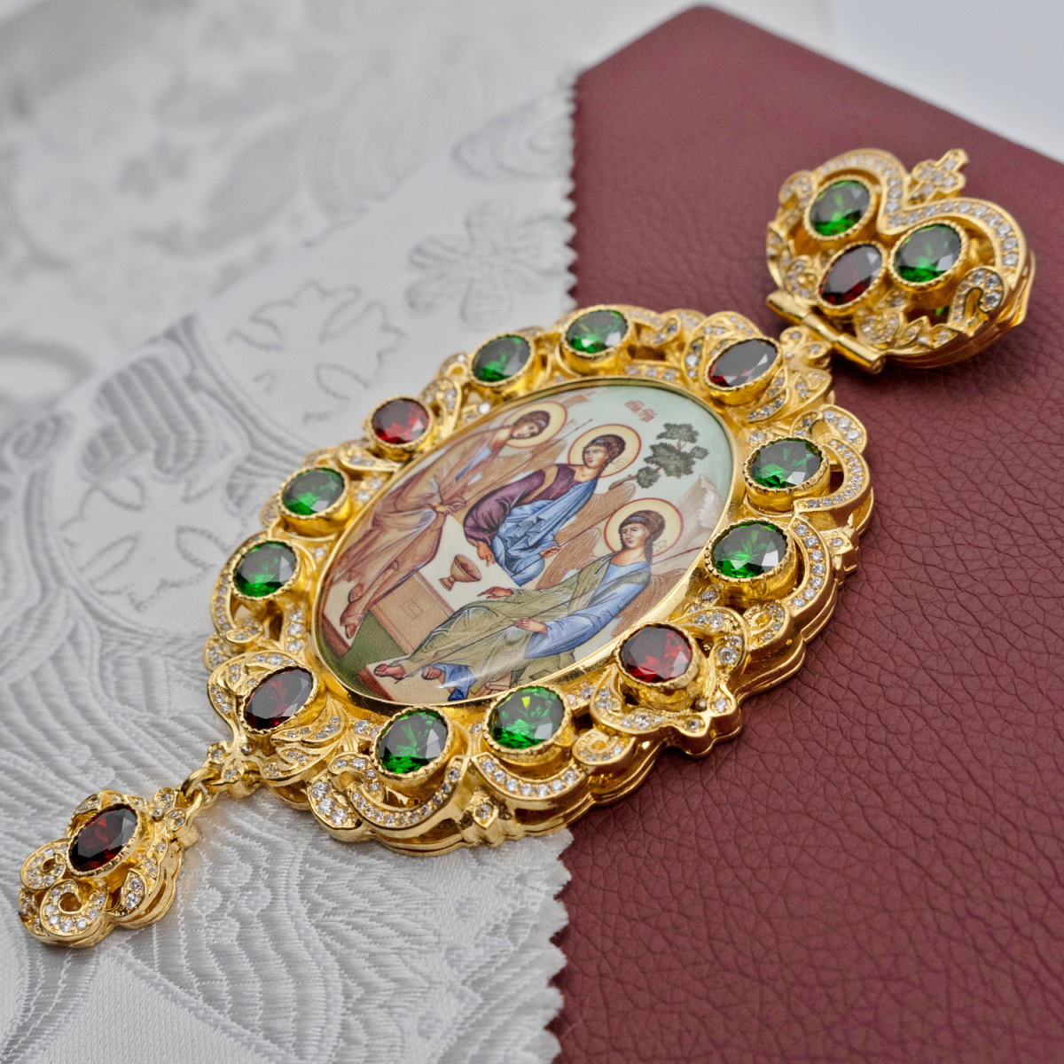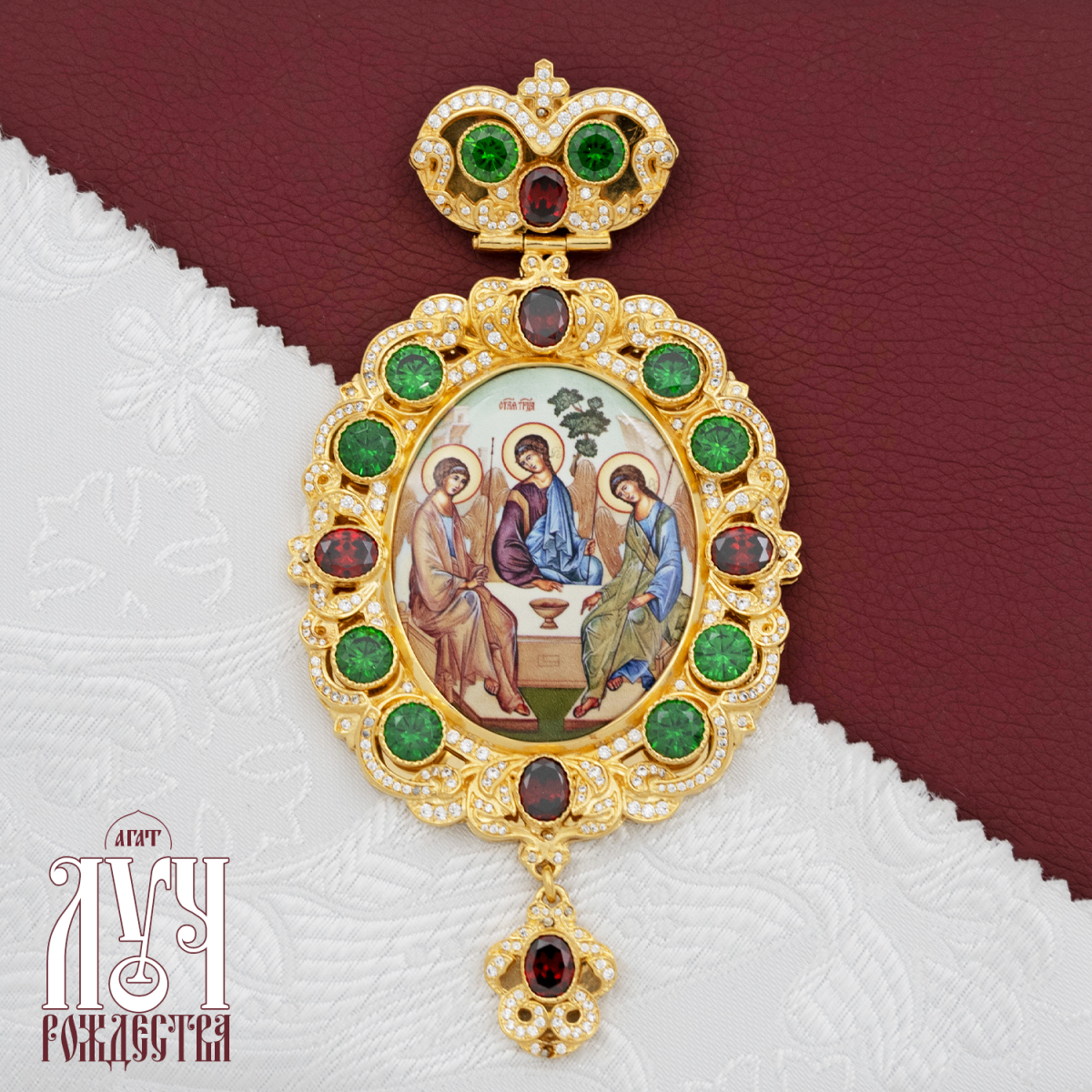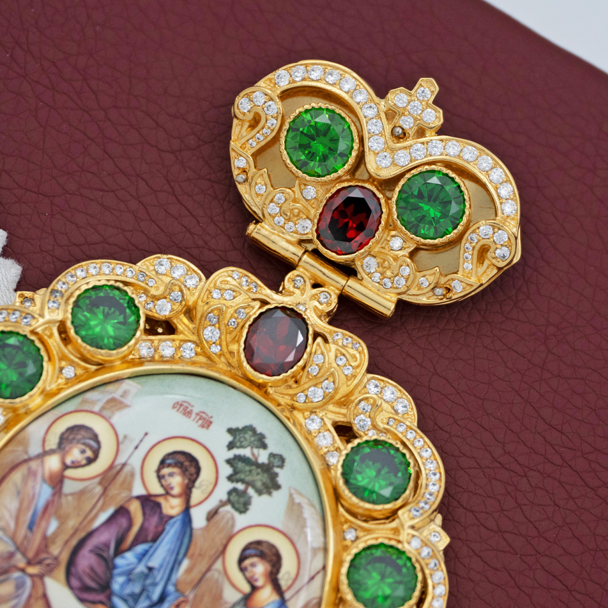 - Панагия латунная в позолоте с латунным принтом, вставками и цепью арт. 2.7.0244лп