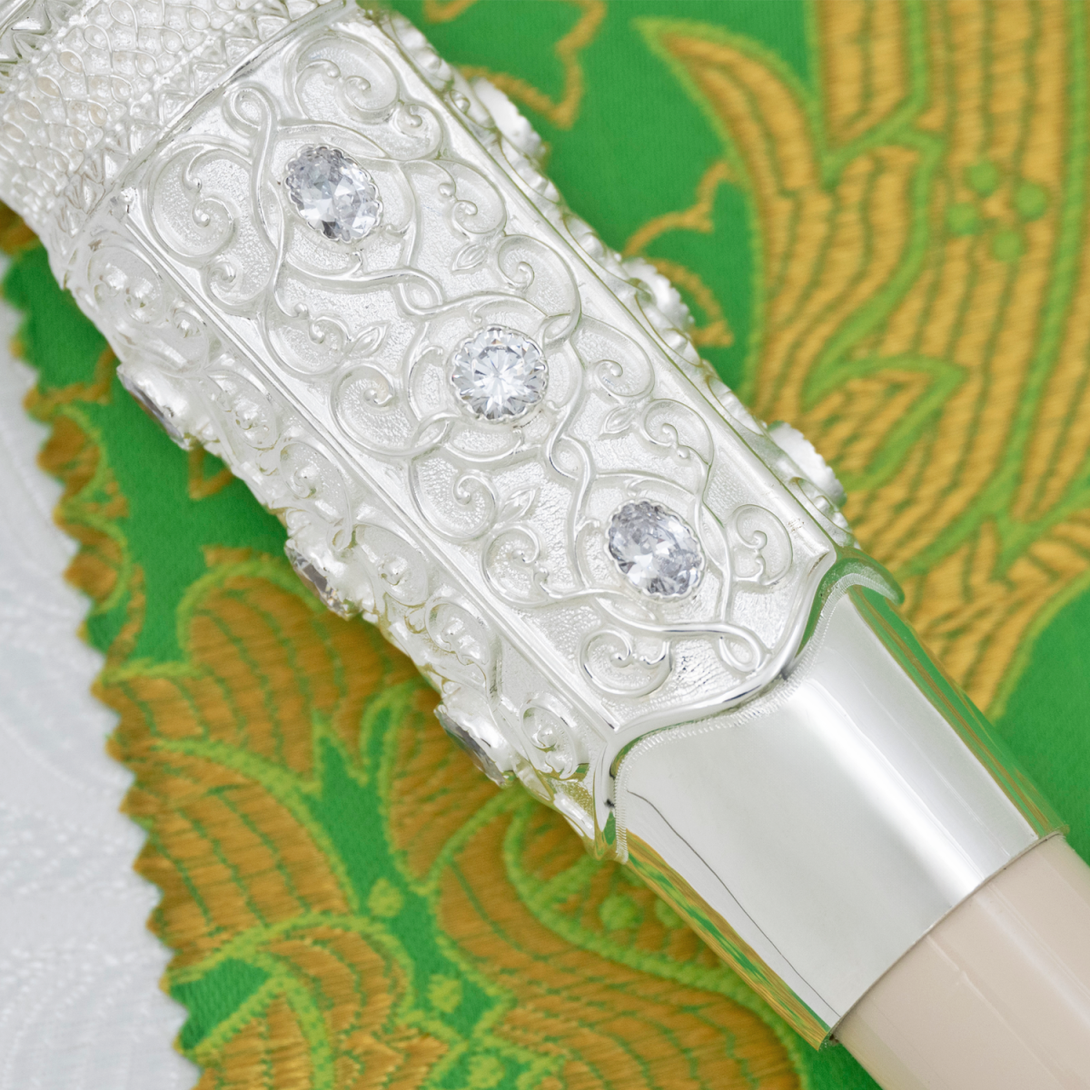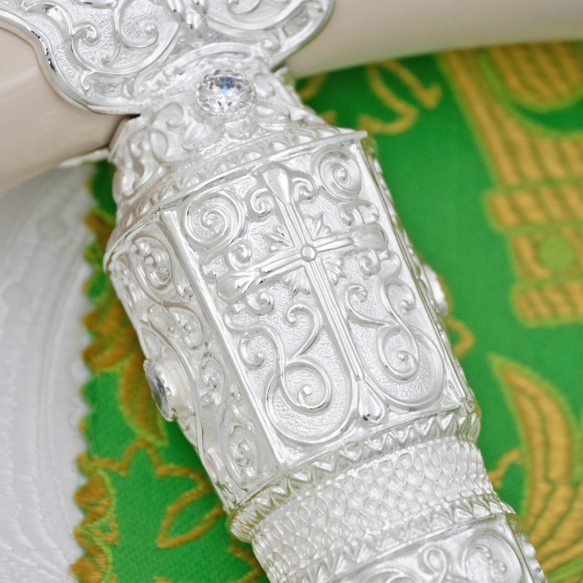 Посох латунный с белыми камнями в серебрениив магазине Благолепие Богослужения