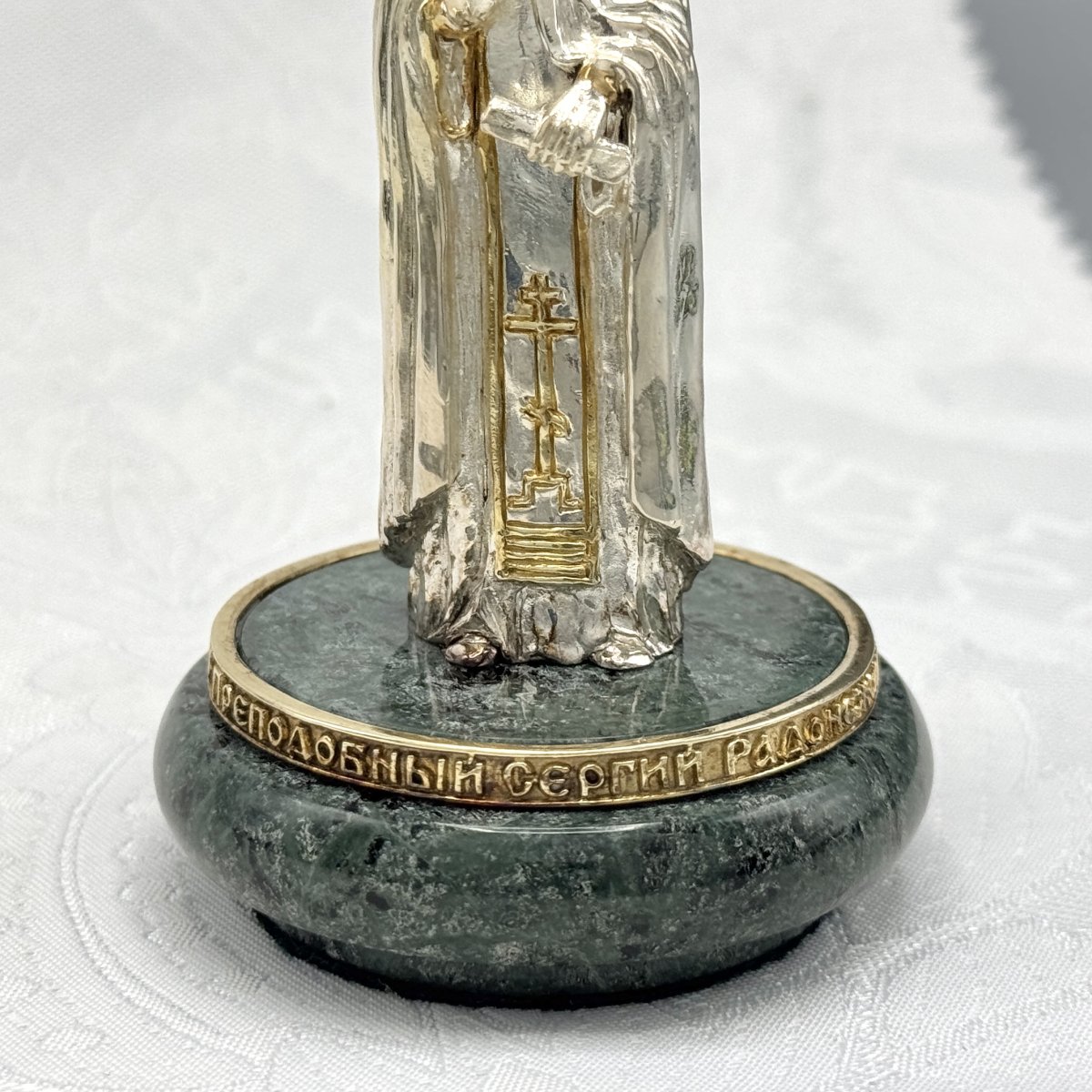 - Настольная скульптура Сергий Радонежский латунная на подставке из мрамора 2.13.0063лп