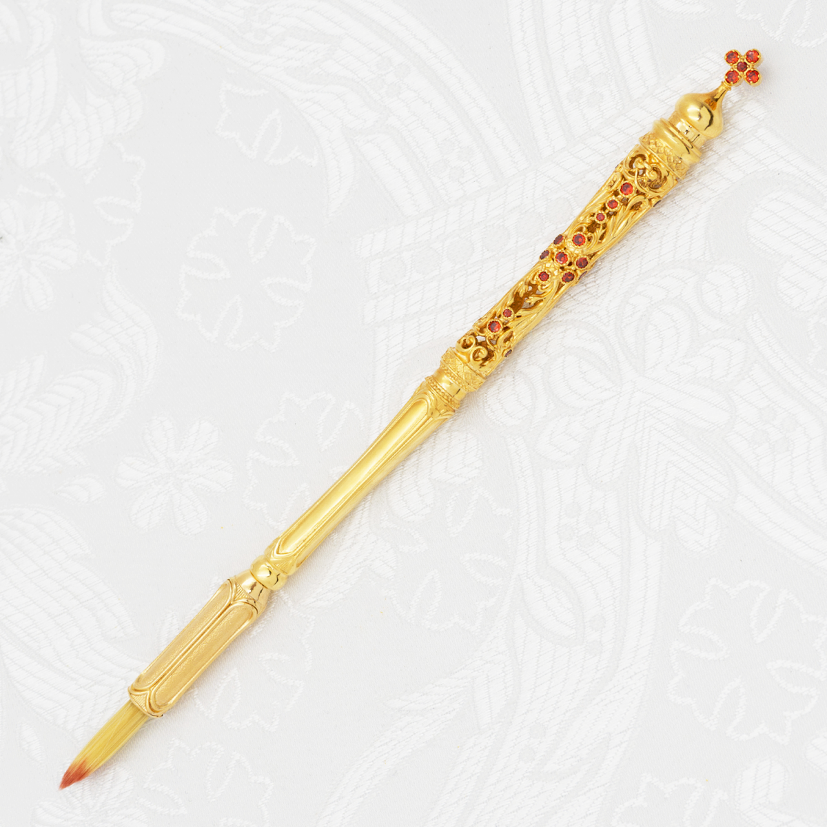 - Стрючица латунная с красными камнями в позолоте 2.7.0793лп