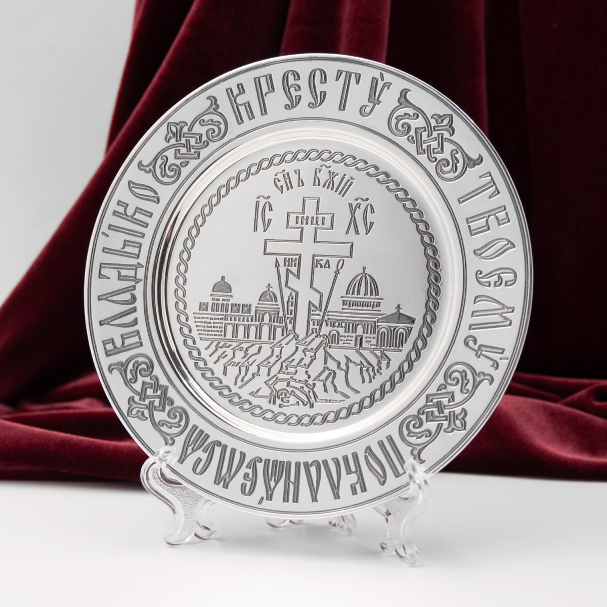 - Тарелица латунная с патинированием в серебрении - Голгофа 2.7.1817лр