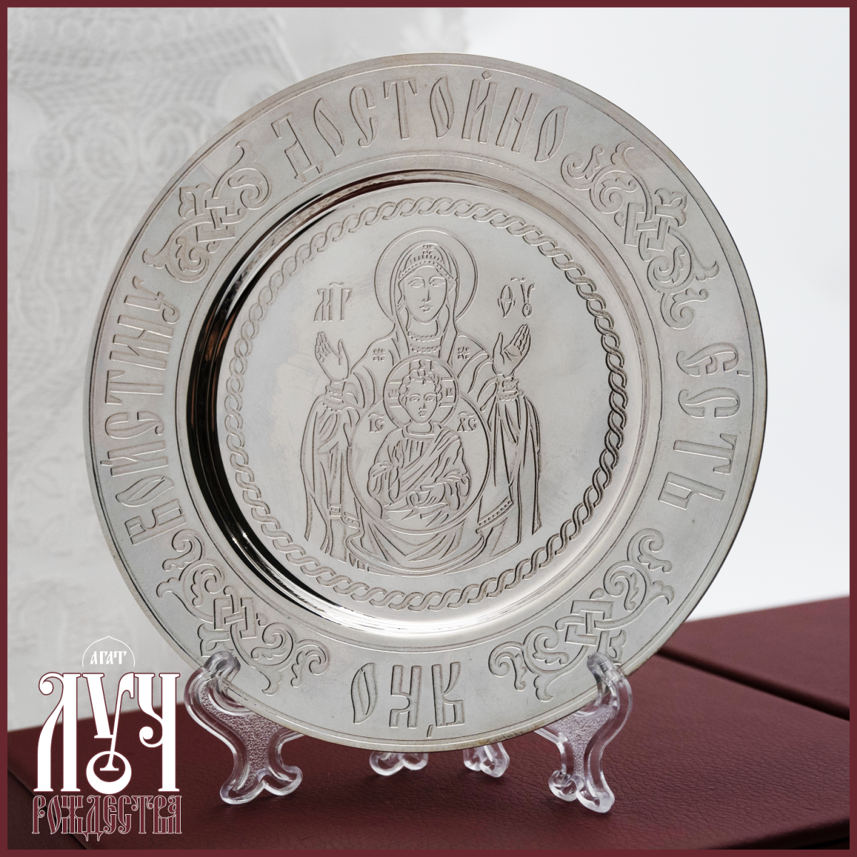 - Тарелица латунная в серебрении — Богородица Знамение 2.7.1818л