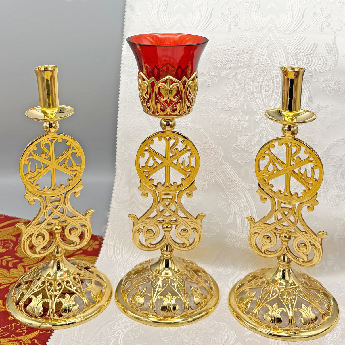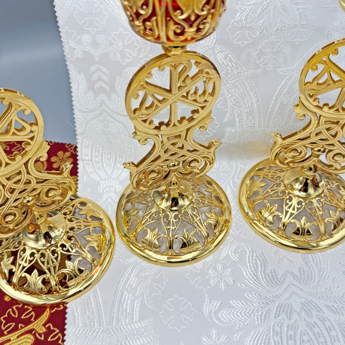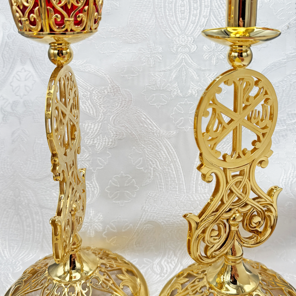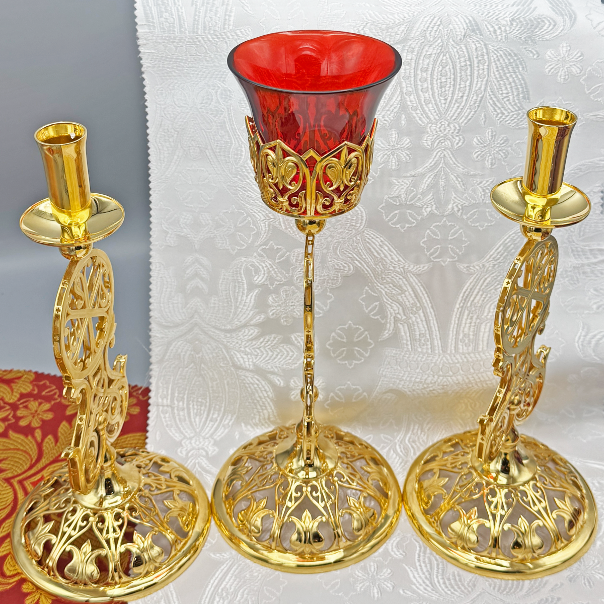 - Набор напрестольный - лампада и подсвечники в позолоте 2.7.2645лп-К