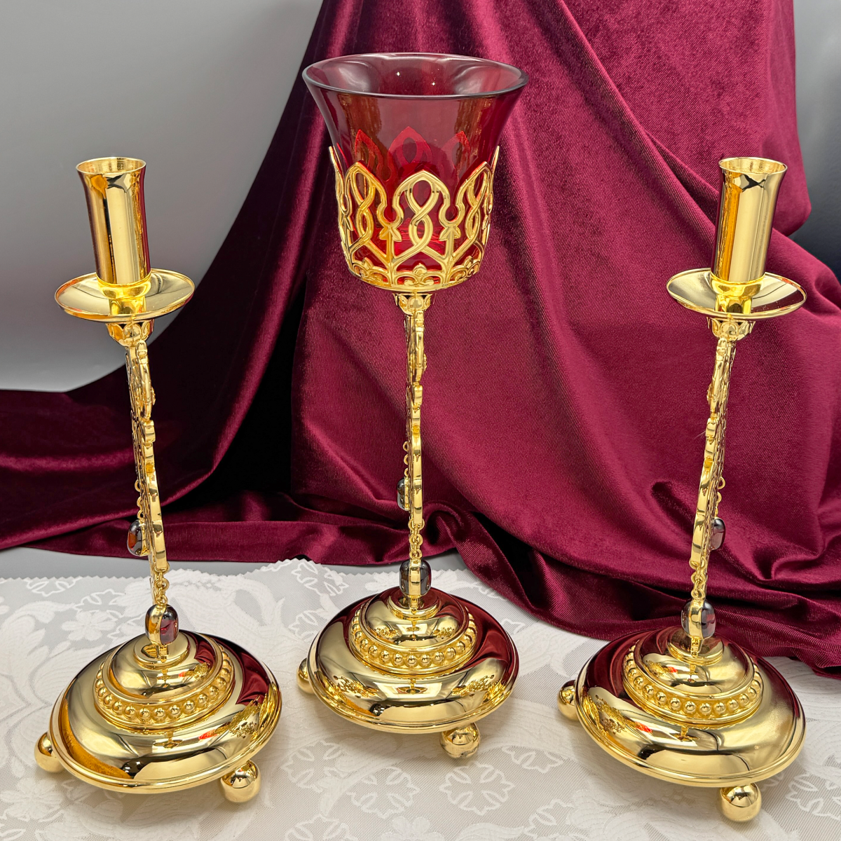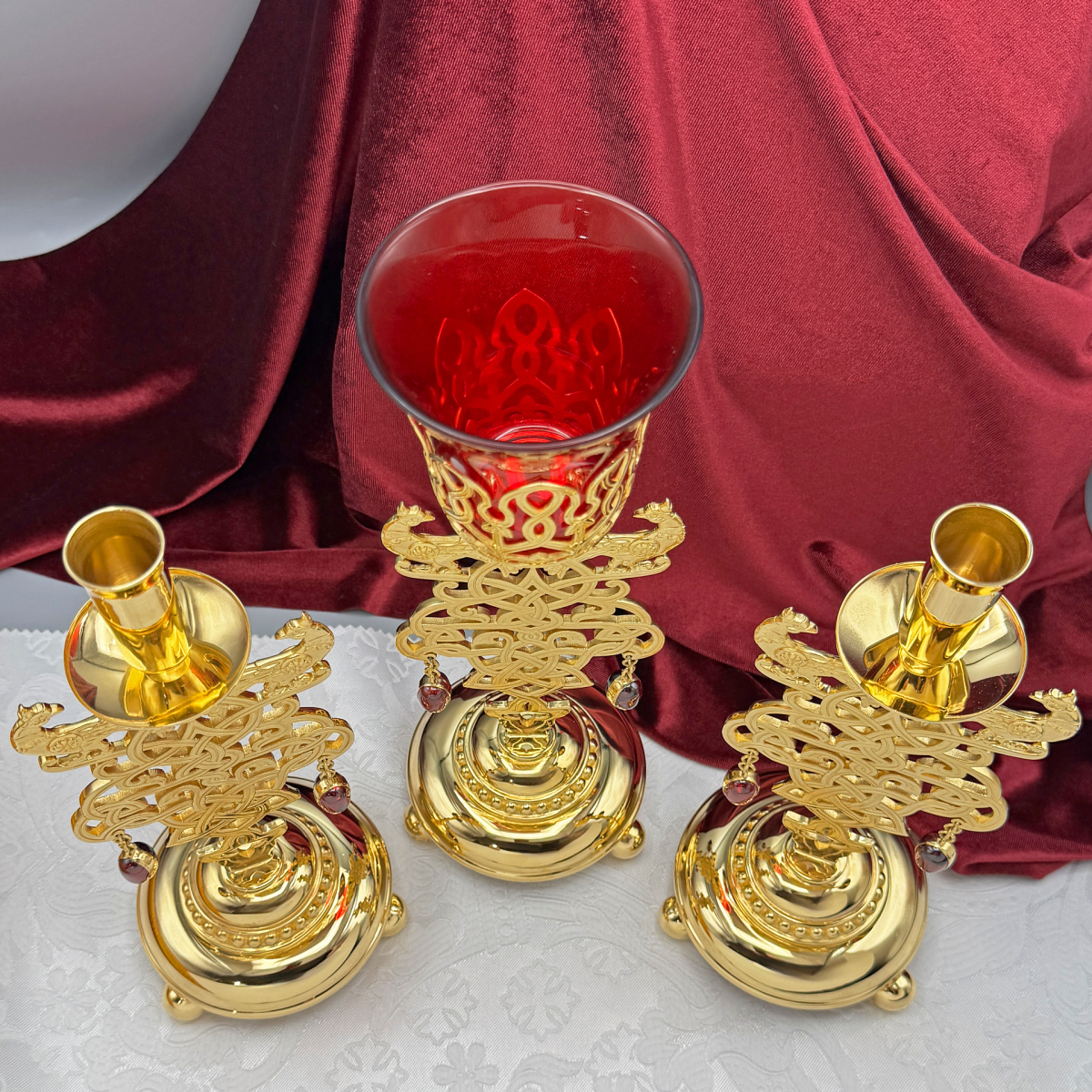 - Набор напрестольный - лампада и подсвечники в позолоте 2.7.2674лп-К