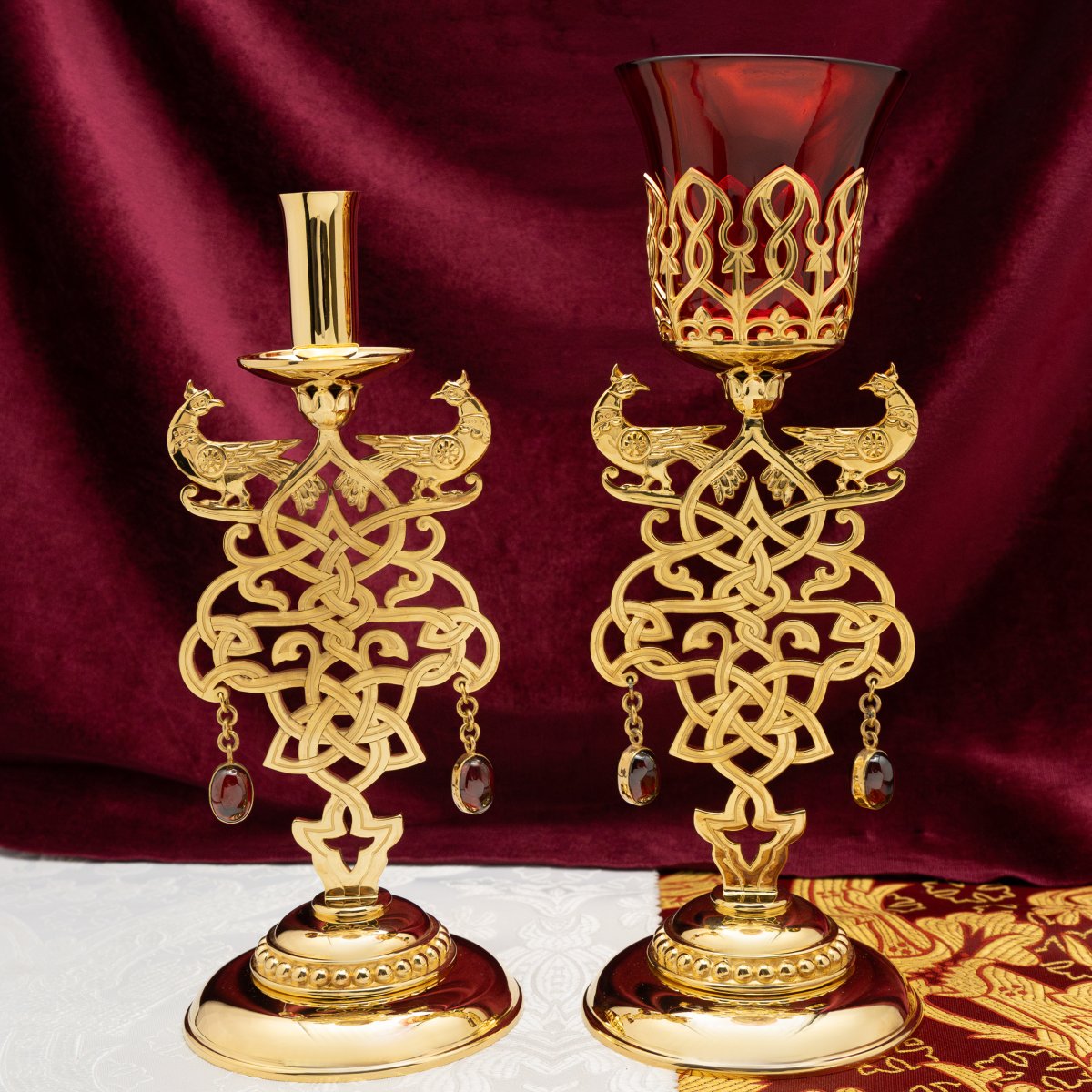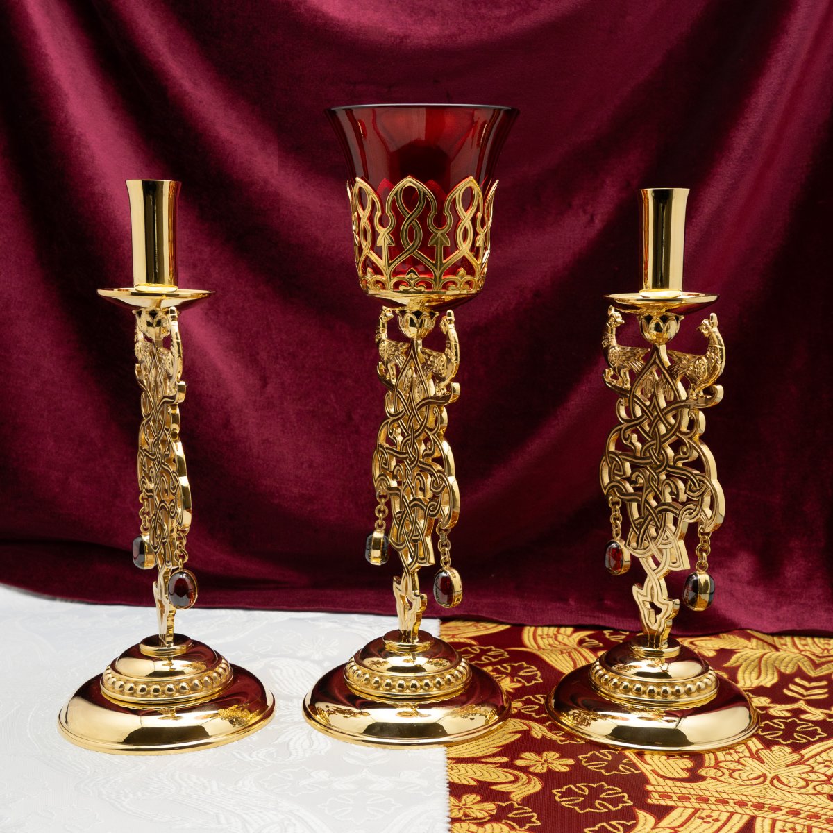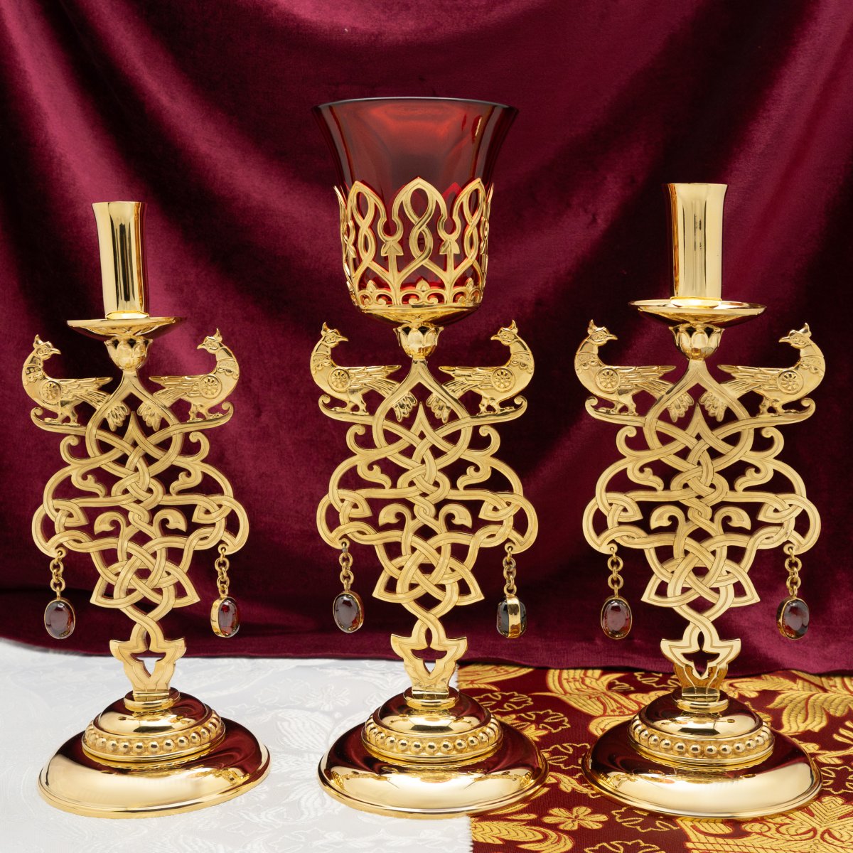 - Набор напрестольный - лампада и подсвечники в позолоте 2.7.2871лп-К