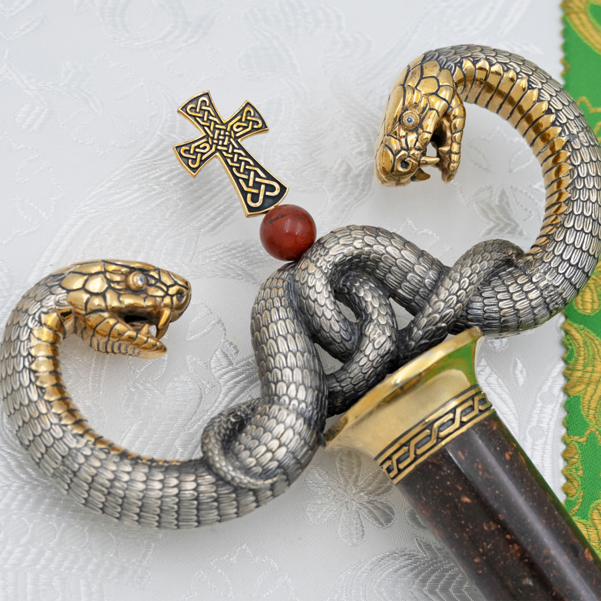 - Жезл латунный в позолоте и патинированием с натуральными камнями 2.7.2443лнпрч