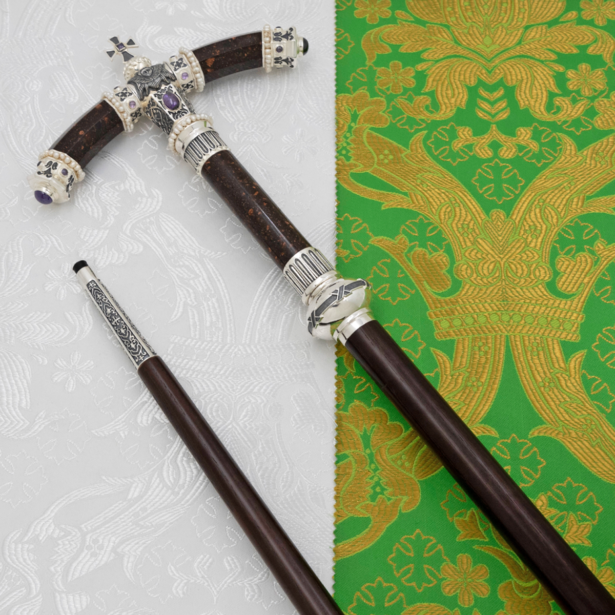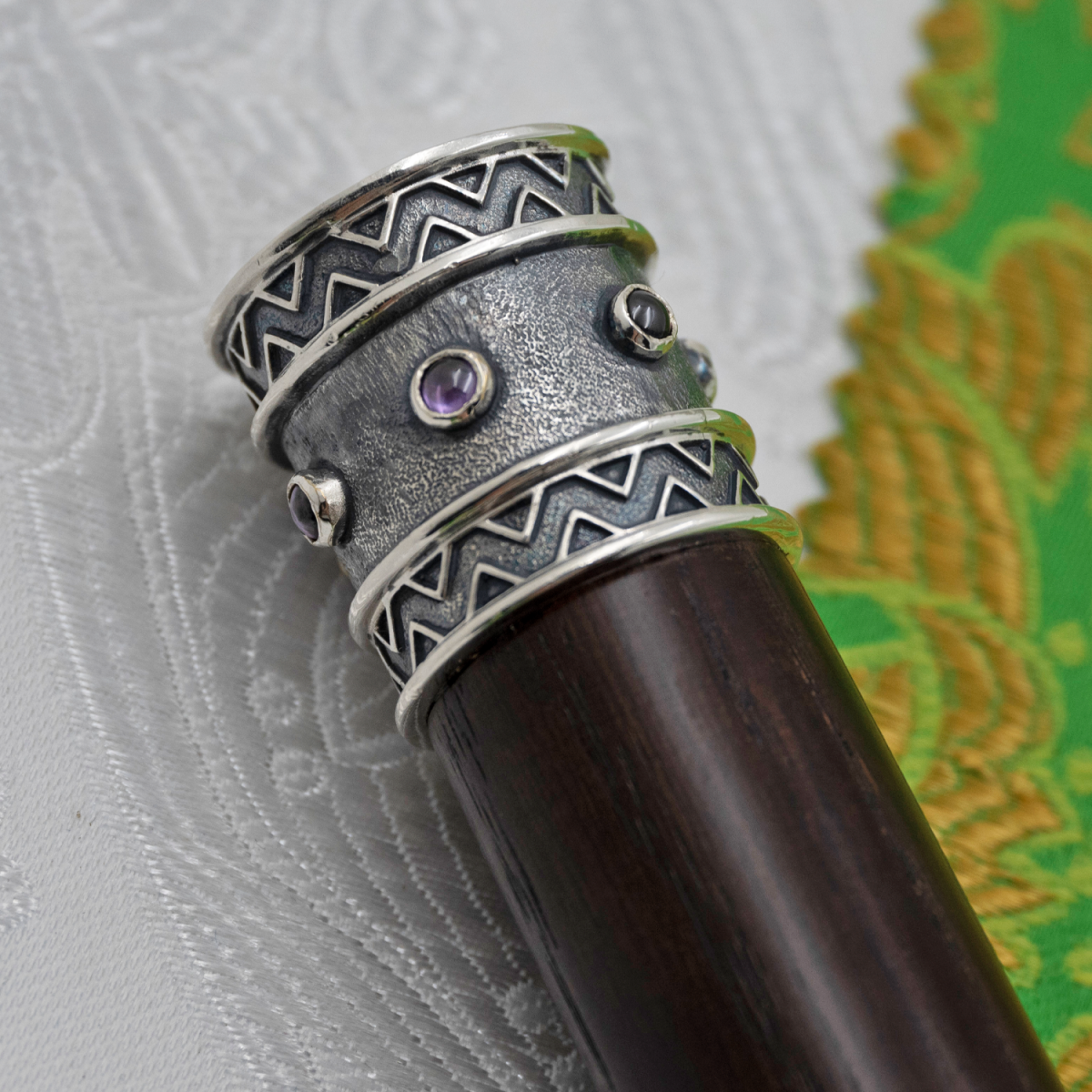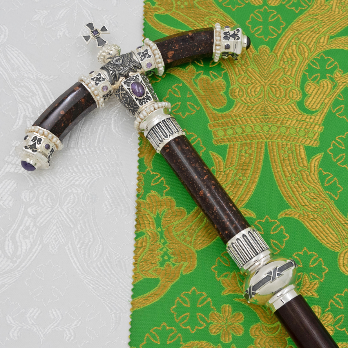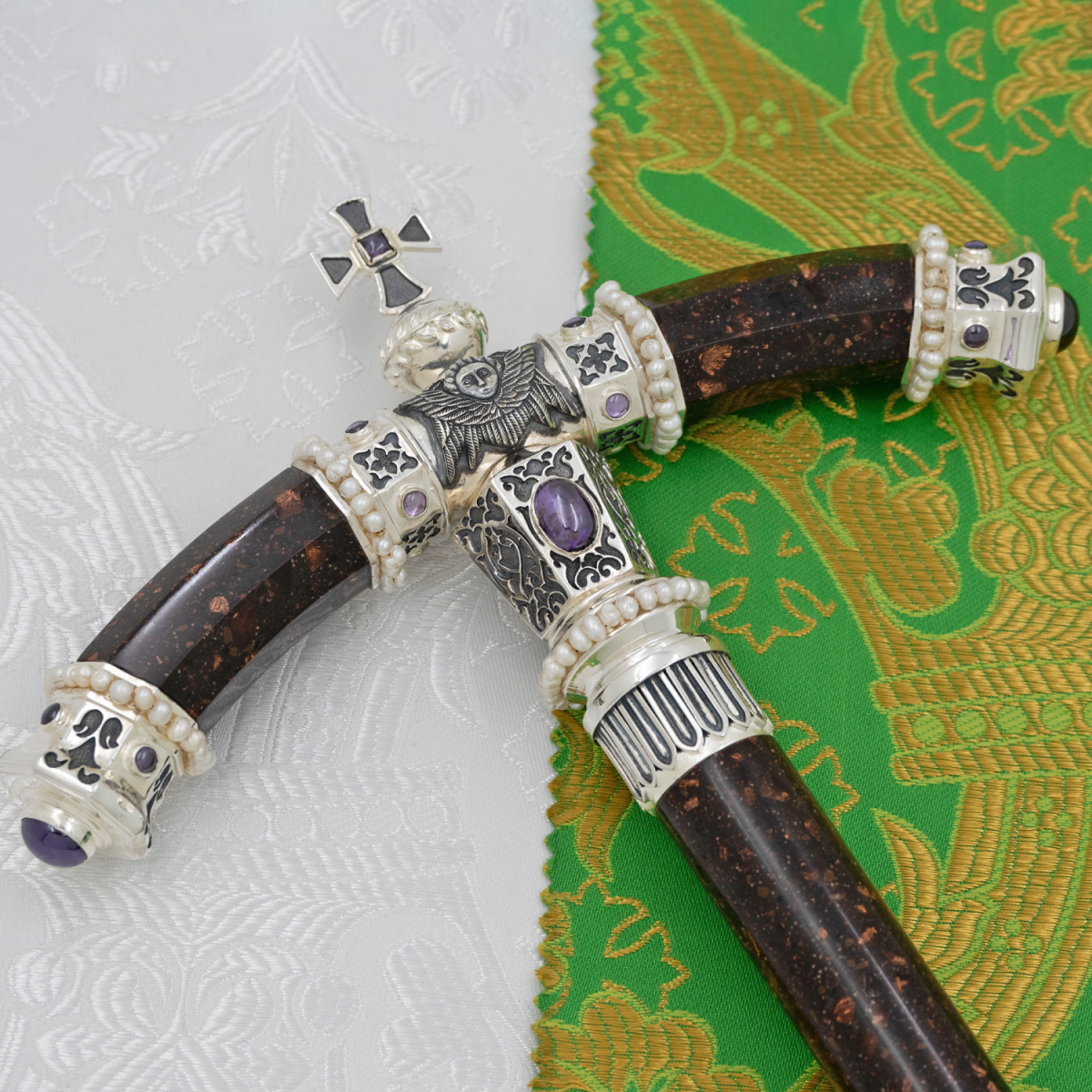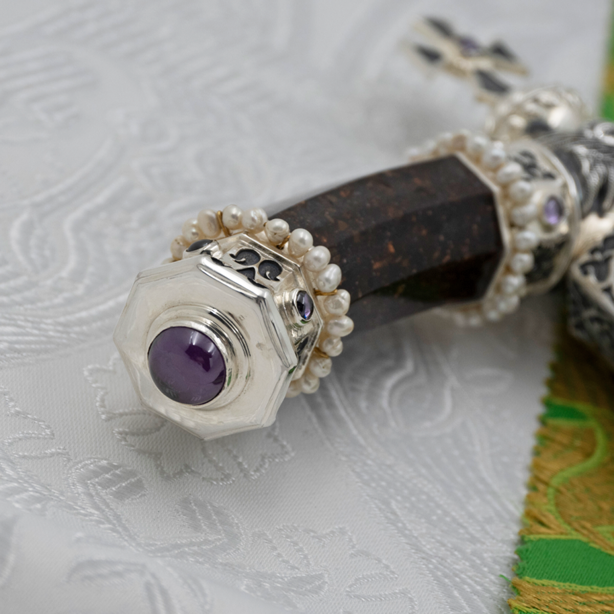 - Жезл латунный с фиолетовыми камнями и жемчугом в серебре 2.7.2577лрч
