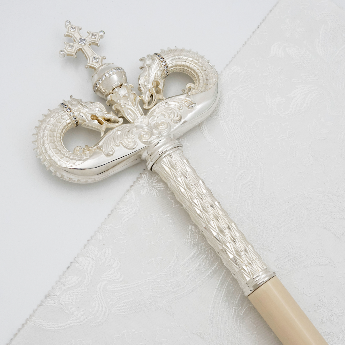 - Жезл латунный с белыми камнями в серебрении 2.7.2833л
