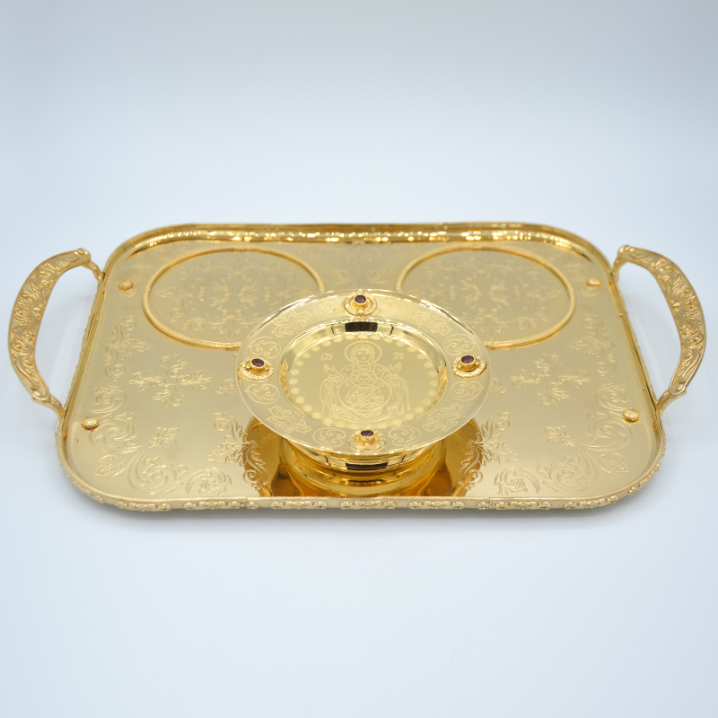 - Поднос латунный для запивки с травлением в позолоте 2.7.0848лп