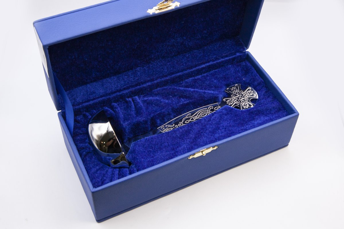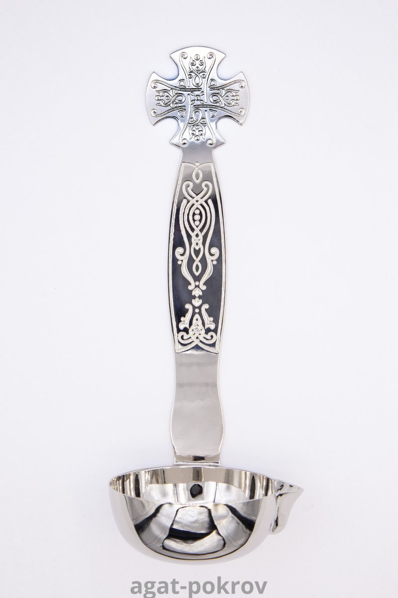 Ковш изготовлен из высококачественного ювелирного сплава, покрытого серебрением гальваническим методом. Такое покрытие продлевает срок службы изделия, защищает от внешних неблагоприятных воздействий. Изделие продается в фирменной упаковке из экокожи с бархатным ложементом.