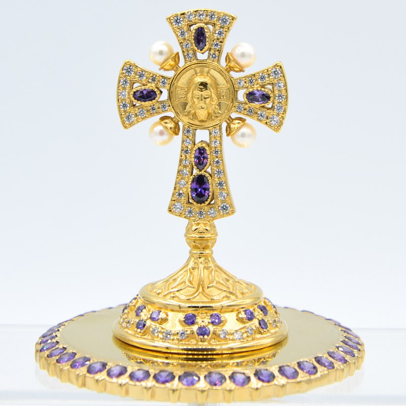 - Крест на митру латунный в позолоте со вставками 2.7.0472лп