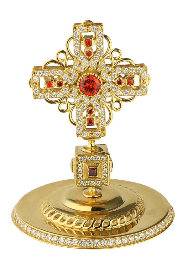 Архиерейский крест на митру изготовлен из латуни и покрыт качественной поЗолотой, нанесенной гальваническим способом. Такая технология гарантирует неизменный внешний вид изделия на длительное время и простоту в уходе. Крест декорирован россыпью камней-Фианитов отменного качества, ручной закрепки. Изделие реализуется в презентабельной кожвиниловой упаковке с бархатным ложементом