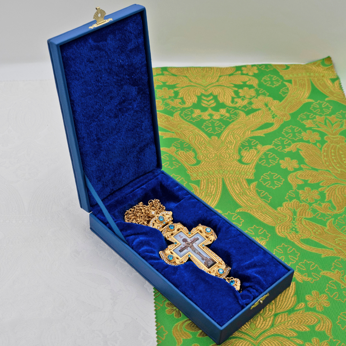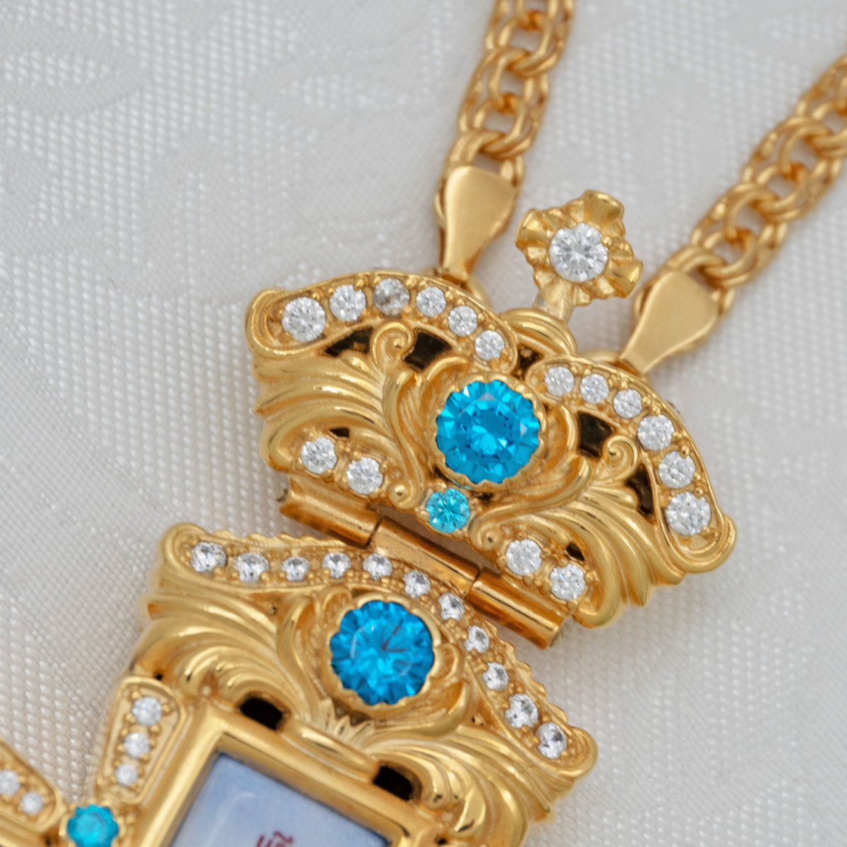 - Крест латунный с голубыми камнями в позолоте 2.10.0359лп-2/1лп